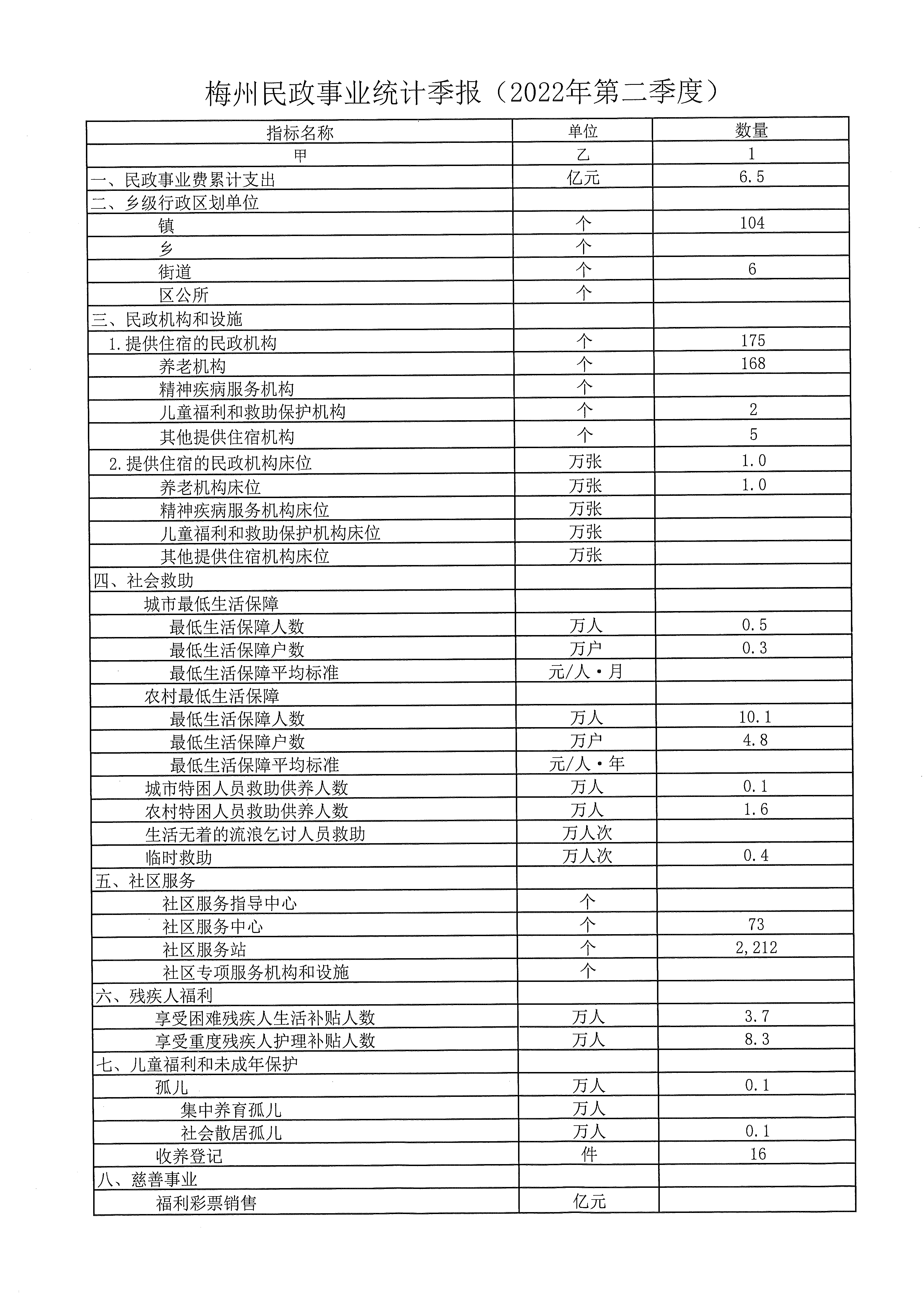 梅州市人民政府門戶網(wǎng)站 梅州市民政局 統(tǒng)計信息 梅州民政事業(yè)統(tǒng)計季報(2022年第二季度)