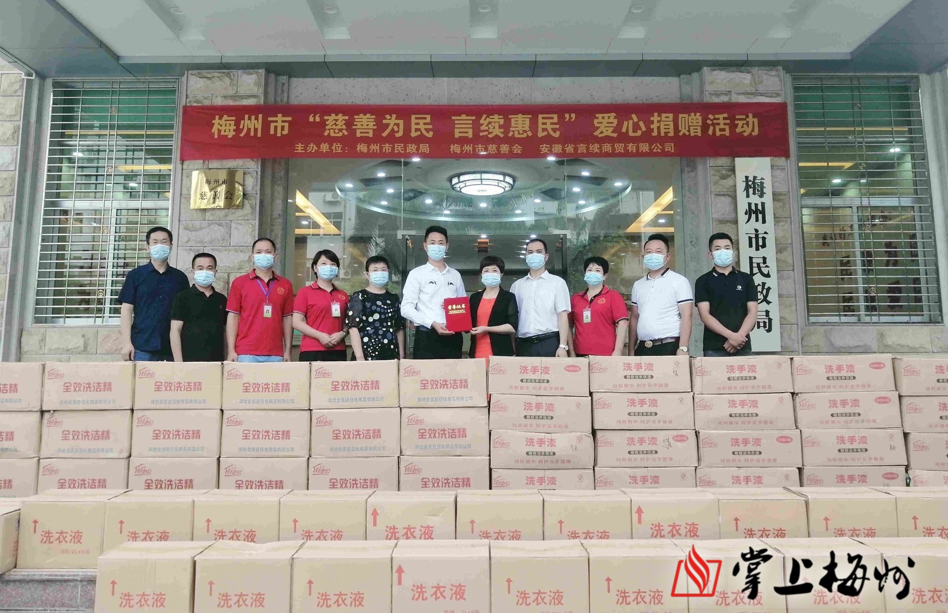掌上梅州訊 6月22日上午,梅州市“慈善為民 言續(xù)惠民”愛心捐贈活動在梅州市民政局舉行。安徽省言續(xù)商貿(mào)有限公司向全市捐贈一批總價值約280萬元的物資,其中包括洗衣液2500多箱、洗潔精20箱、洗手液2500多箱、84消毒液2500多箱以及太陽能照明燈4088盞。