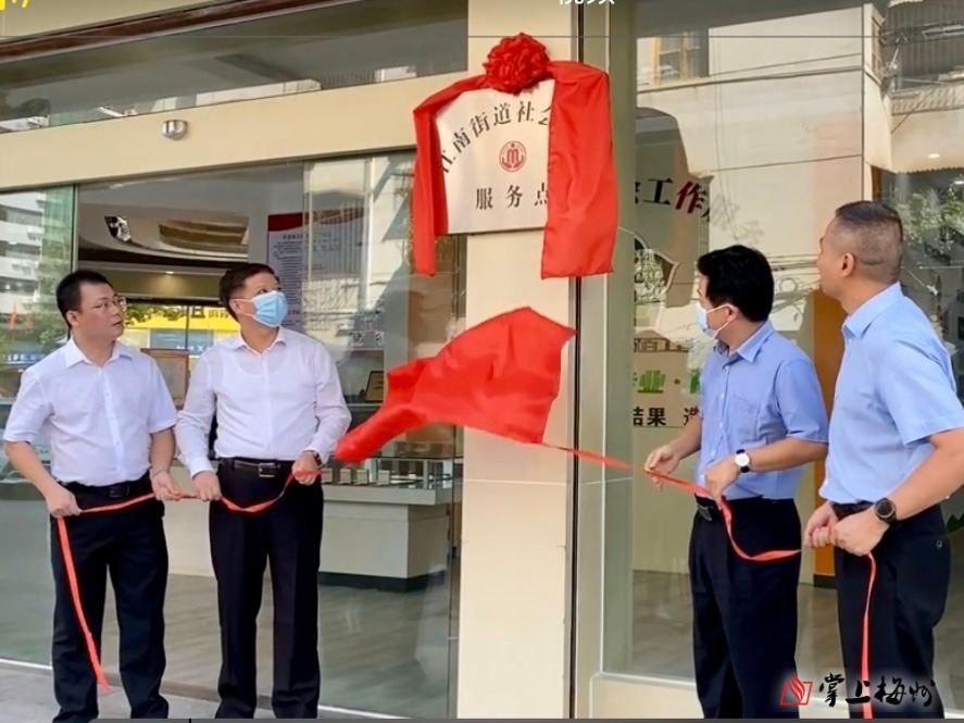 20日上午,“廣東兜底民生服務(wù)社會(huì)工作雙百工程”(以下簡(jiǎn)稱(chēng)“雙百工程”)梅江區(qū)江南街道社會(huì)工作服務(wù)點(diǎn)掛牌儀式在梅江區(qū)城市黨群服務(wù)中心舉行,各縣(市、區(qū))社工服務(wù)站(點(diǎn))同時(shí)掛牌。這標(biāo)志著全市114個(gè)鎮(zhèn)(街)社會(huì)工作服務(wù)站正式起航。
