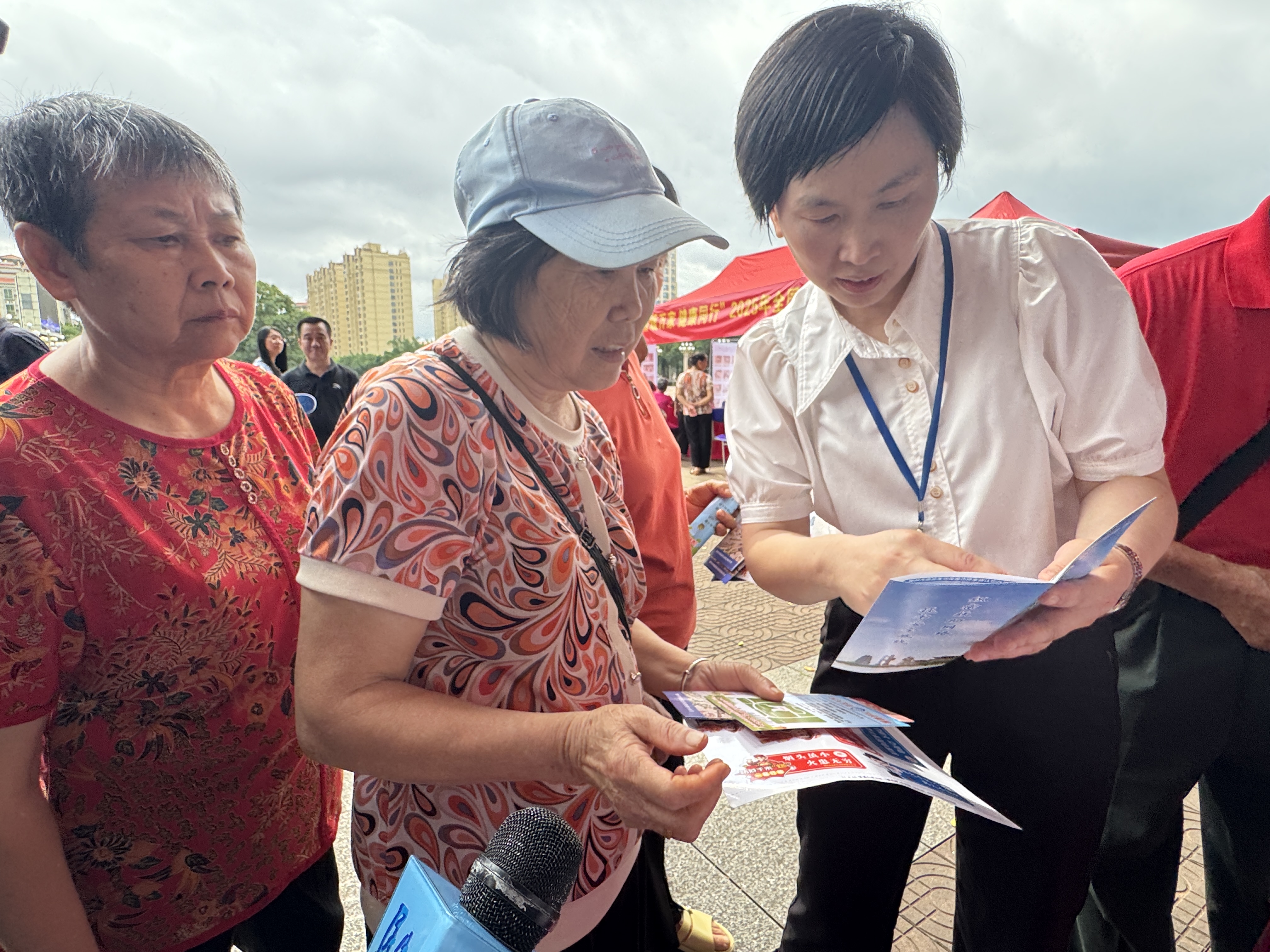 劍英公園現(xiàn)場(chǎng),市救助管理站、梅江區(qū)救助站工作人員及志愿者們向市民宣講社會(huì)救助政策及救助管理工作成效。