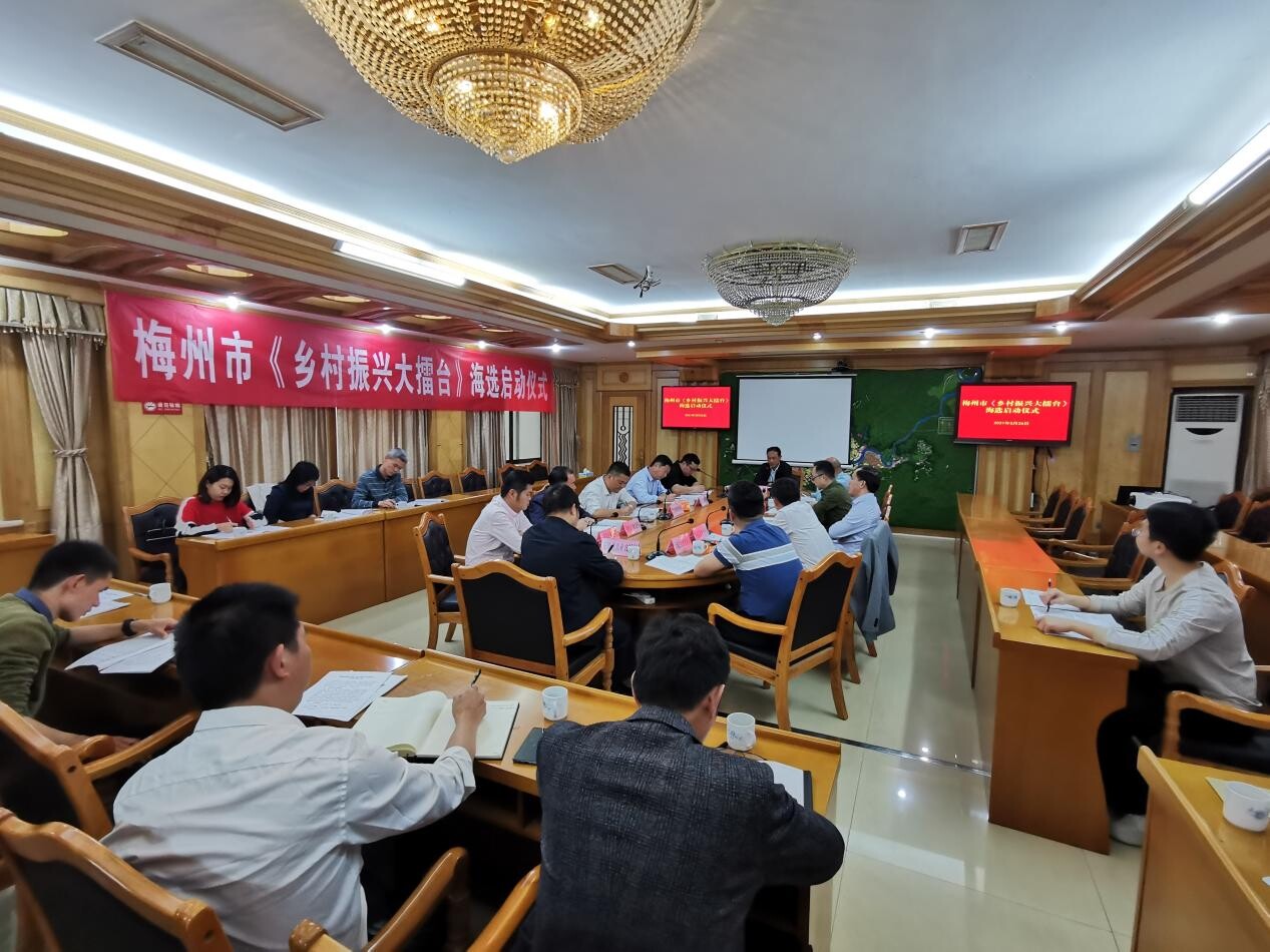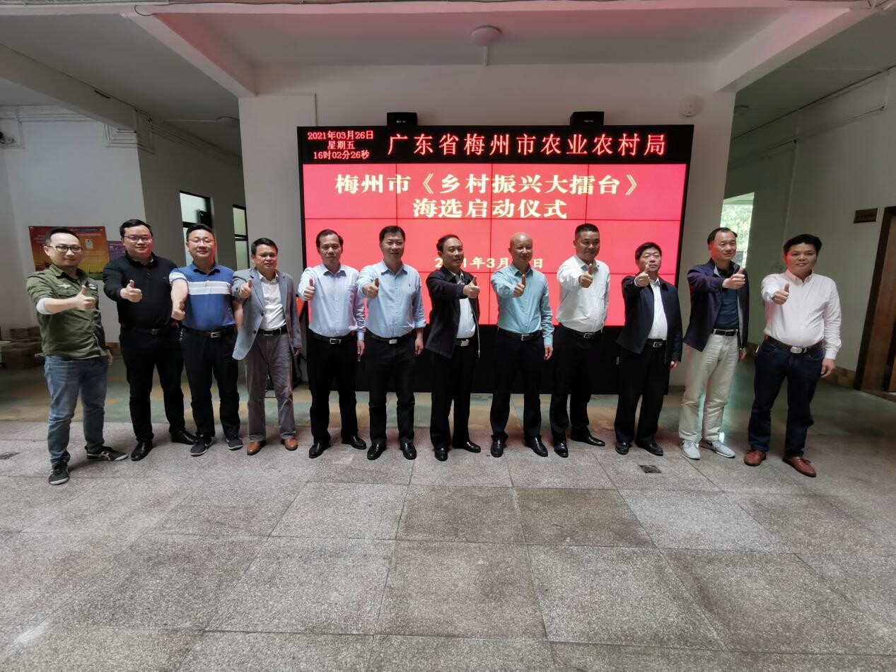 3月26日,廣東省第二屆《鄉(xiāng)村振興大擂臺(tái)》梅州賽區(qū)海選活動(dòng)正式啟動(dòng)。市農(nóng)業(yè)農(nóng)村局副局長(zhǎng)黃帆,市廣播電視臺(tái)副臺(tái)長(zhǎng)葉斌,各縣(市、區(qū))農(nóng)業(yè)農(nóng)村局分管負(fù)責(zé)同志,以及市縣有關(guān)負(fù)責(zé)同志等20多人參加了啟動(dòng)儀式。