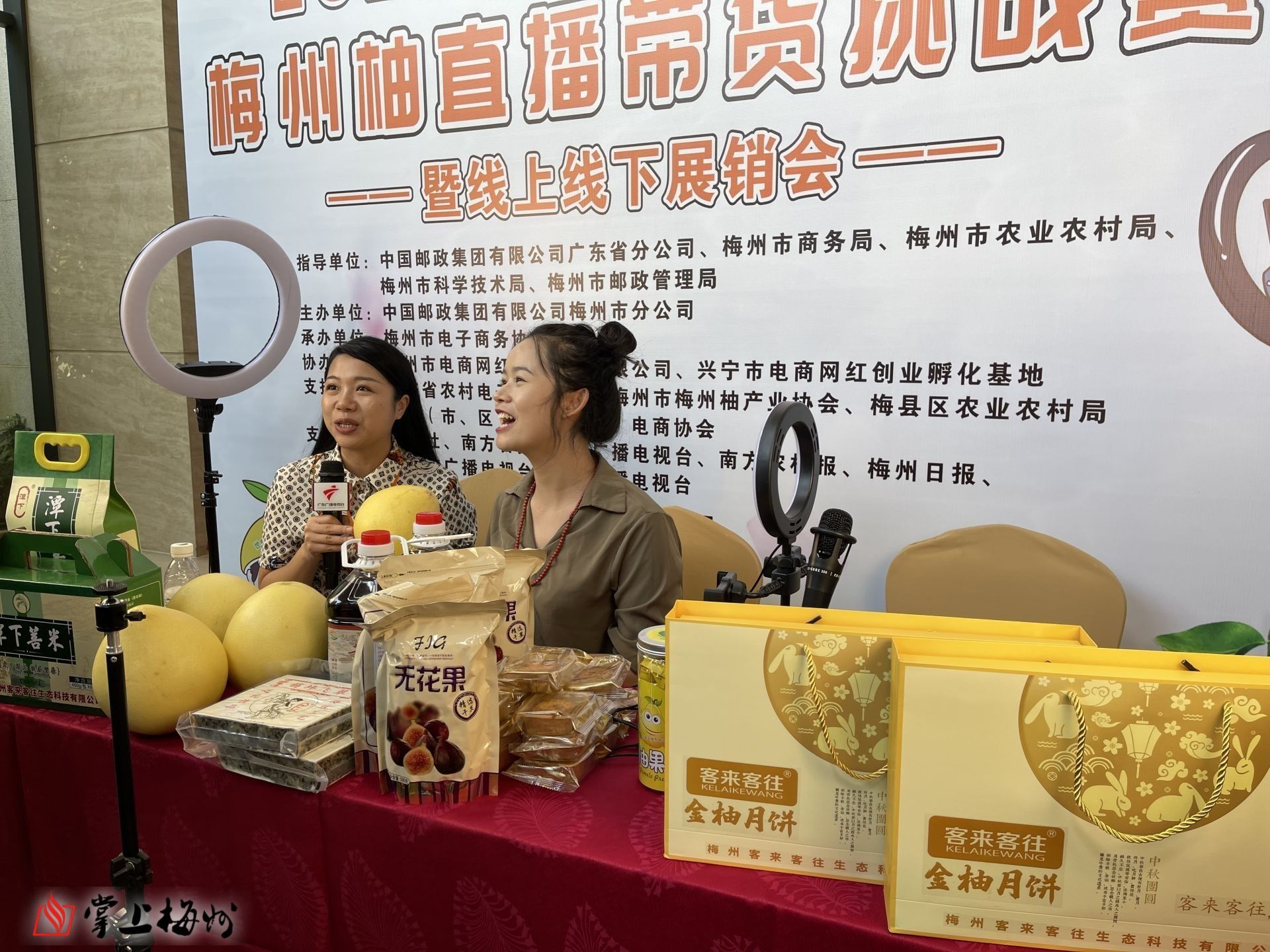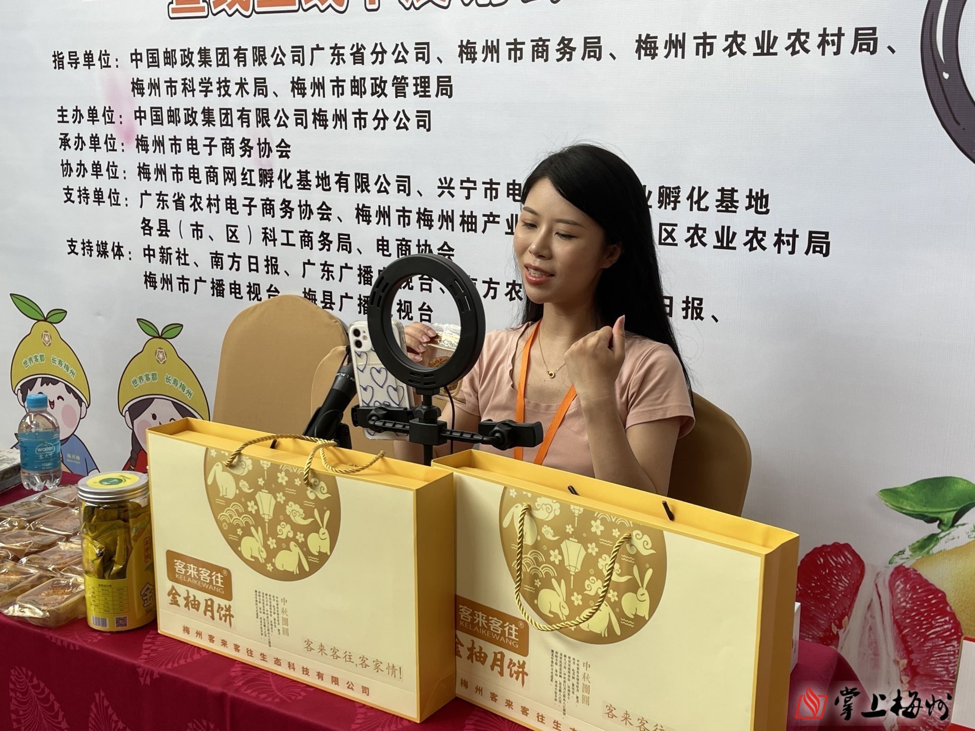初秋時(shí)節(jié),柚果飄香。2日上午,主題為“擦亮梅州柚品牌 郵政助力走全國”的2021年郵政“電商杯”梅州柚直播帶貨挑戰(zhàn)賽暨線上線下展銷會活動(dòng)在梅城舉行?,F(xiàn)場匯集了22家梅州柚及梅州柚加工農(nóng)電商企業(yè)進(jìn)行產(chǎn)品展銷,網(wǎng)紅主播們把直播室搬到了展廳,開啟直播和現(xiàn)場雙重帶貨模式,助力銷售“梅州柚”。