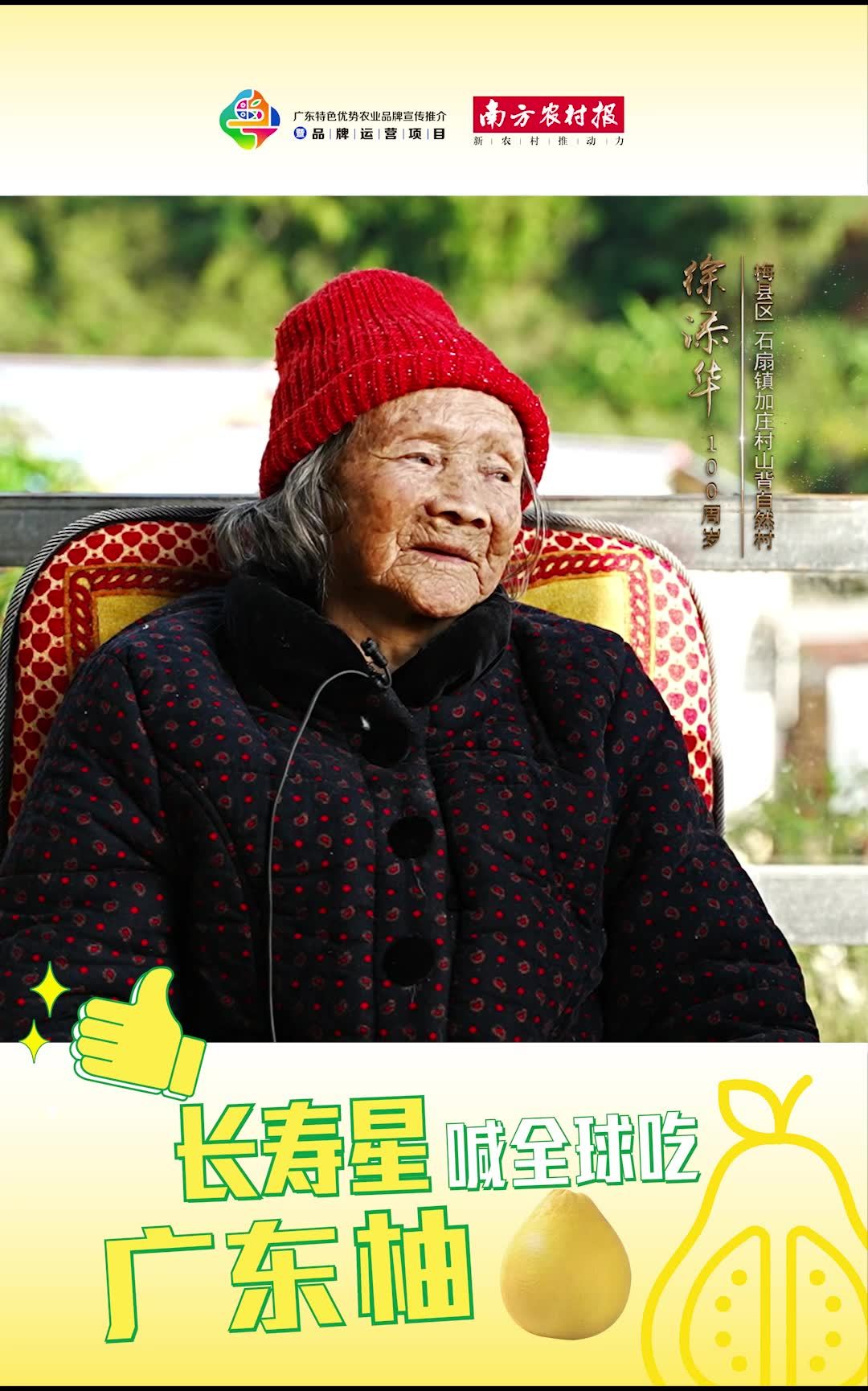 青山翠林腳下坐落著一排房屋,房屋間隔出一個(gè)干凈整潔的庭院,吹來(lái)的是徐徐山風(fēng),流暢的是潺潺山泉。12月8日,徐添華老人的家里迎來(lái)一批客人,格外熱鬧。原來(lái),南方+、南方農(nóng)村報(bào)采風(fēng)團(tuán)正在給長(zhǎng)壽星拍攝短視頻,發(fā)起“長(zhǎng)壽星喊全球吃廣東柚”活動(dòng)。