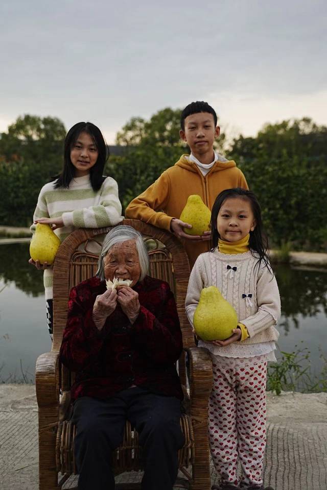 采風(fēng)團(tuán)來(lái)到石扇鎮(zhèn)上,看見(jiàn)一位老阿婆坐庭前,一女孩把剝好的柚子遞到她嘴邊。記者一問(wèn),得知女孩是阿婆的重孫女,她說(shuō),太婆名字叫馮錦靈,今年102歲了,太婆一生勤勞樸素,習(xí)慣早起早睡,生活上以吃清淡為主,生性樂(lè)觀,年輕時(shí)種有幾十畝柚子,多年來(lái),她非常喜歡吃柚子,也很熱情地分享給親朋好友。