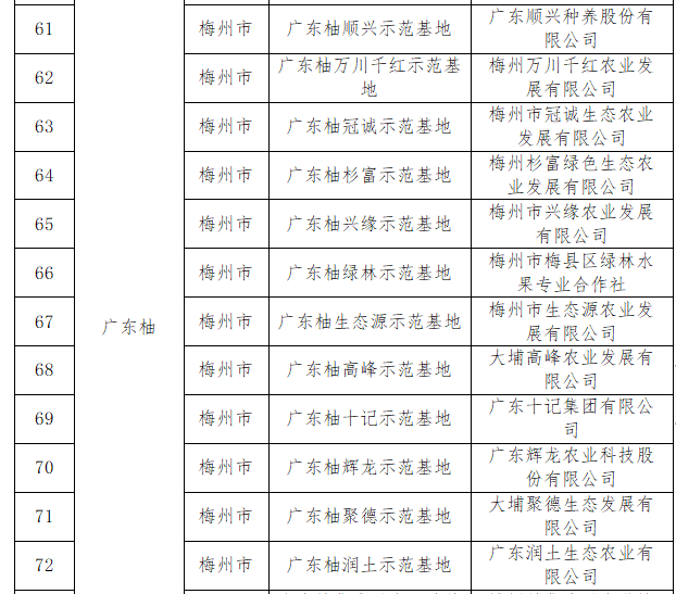 日前,省農(nóng)業(yè)農(nóng)村廳公布2022年“粵字號(hào)”農(nóng)業(yè)品牌示范基地名單,梅州共有30處基地入選,涵蓋品類(lèi)包括柚子、柑橘、絲苗米、茶葉和食用菌。