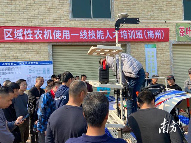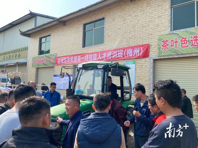 春日暖陽下,梅州市梅縣區(qū)田園農業(yè)機械服務專業(yè)合作社內,人潮涌動,傳來陣陣授課聲、交流聲。在合作社內的小型育秧設備、插秧機、拖拉機周邊,近百名農機手圍坐一團,聽著技術專家講解操作要點、注意事項等。