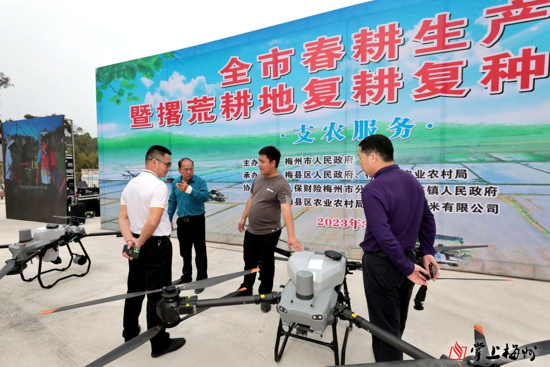 活動中,與會人員來到梅縣區(qū)畬江鎮(zhèn)太湖村,現(xiàn)場觀摩機耕、機播、機插、無人機各類農(nóng)機裝備現(xiàn)場作業(yè)及農(nóng)業(yè)發(fā)展成果展示(糧食生產(chǎn)、撂荒耕地整治、高標農(nóng)田建設、社會化服務、農(nóng)業(yè)農(nóng)機化全程全面發(fā)展)等情況。隨后,前往梅縣區(qū)畬江鎮(zhèn)畬穗絲苗米產(chǎn)業(yè)園,觀摩名優(yōu)新特農(nóng)產(chǎn)品、農(nóng)業(yè)機械、農(nóng)業(yè)科技、放心農(nóng)資和農(nóng)業(yè)金融保險服務等支農(nóng)下鄉(xiāng)活動。結束觀摩后,我市隨即在畬江鎮(zhèn)人民政府召開會議,傳達全省春耕生產(chǎn)暨支農(nóng)服務下鄉(xiāng)現(xiàn)場會議精神,聽取梅縣區(qū)、大埔縣、中國人民保險梅州市分公司、廣東米粒農(nóng)業(yè)發(fā)展有限公司、梅州市志穎農(nóng)業(yè)科技服務有限公司等單位的典型發(fā)言,并部署下一步工作。