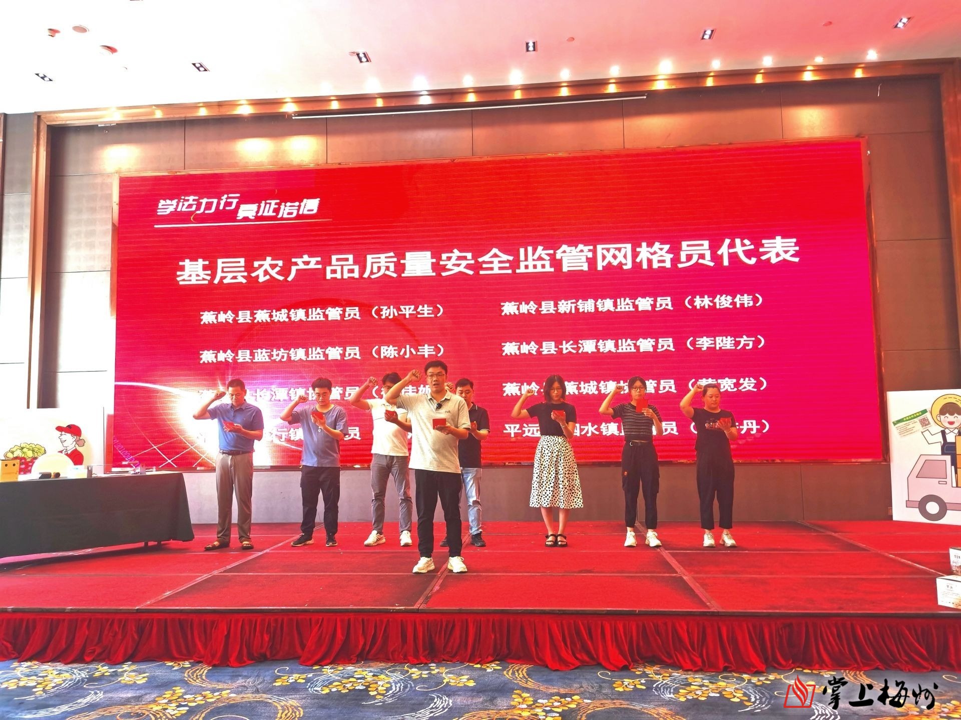 培訓(xùn)前,主辦方還舉行了開班儀式和廣東達(dá)標(biāo)合格農(nóng)產(chǎn)品亮證行動宣誓儀式。與會人員觀看了視頻《達(dá)標(biāo)亮證,廣東在行動》,隨后,生產(chǎn)主體代表、農(nóng)產(chǎn)品經(jīng)營主體、基層農(nóng)產(chǎn)品質(zhì)量安全監(jiān)管網(wǎng)格員代表分別上臺宣誓。培訓(xùn)現(xiàn)場還排演了情景劇《農(nóng)安追溯你知我知,你好我好大家好》。