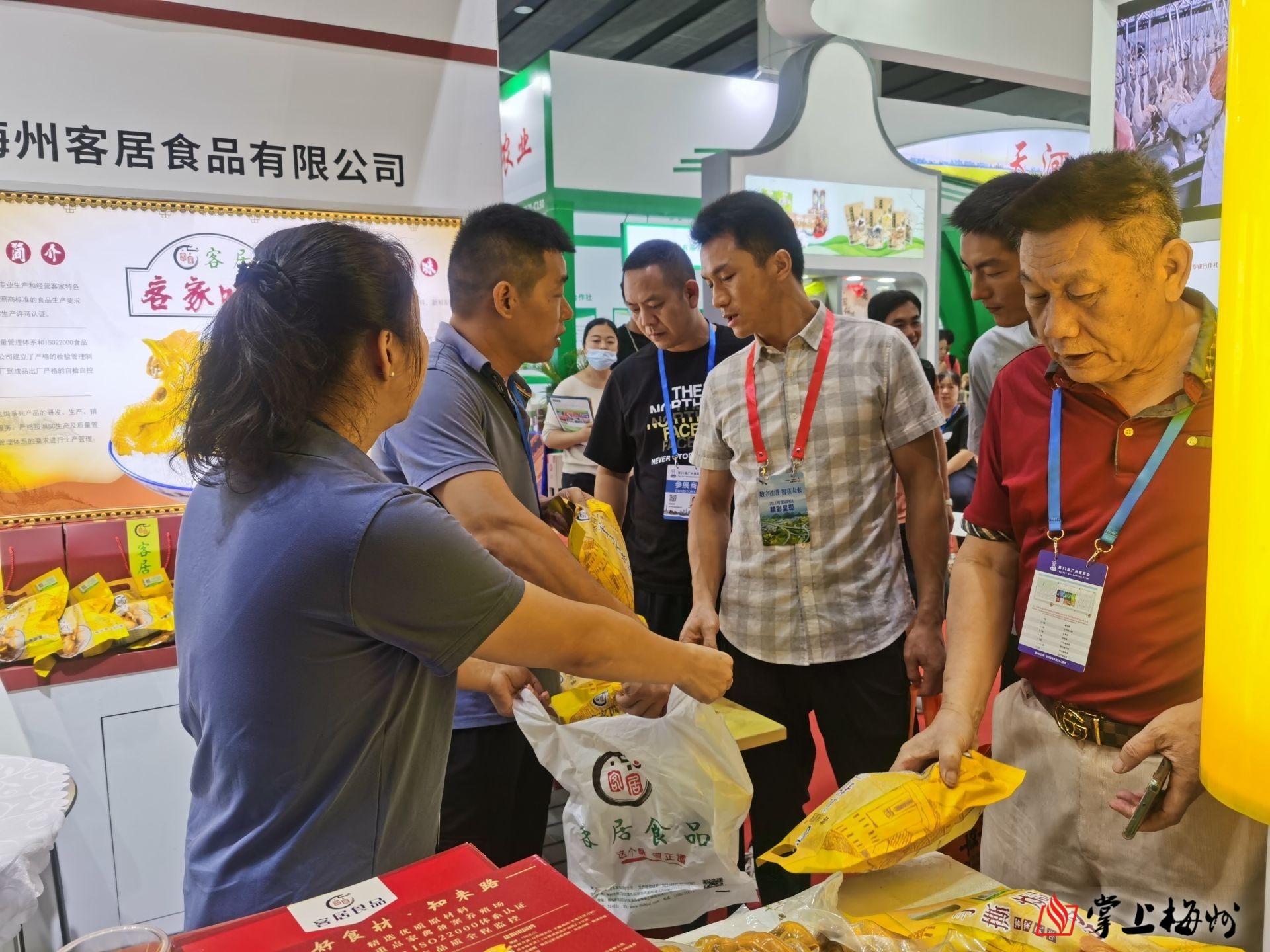 柚花茶、金柚月餅、客家腌面、鹽焗雞、梅菜扣肉、富硒大米……今年的廣州農(nóng)博會上,我市農(nóng)業(yè)企業(yè)帶來了梅州柚、嘉應茶、客都米、三及第、腌面、鹽焗雞、客家豆腐等100多種產(chǎn)品,香噴噴的客家美食引得大灣區(qū)消費者爭相搶購。
