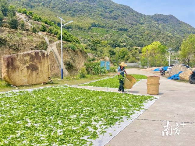 在桃源鎮(zhèn)海拔700多米的高山之上,積蓄了一整個冬天能量的茶園“上新”了。走進(jìn)茶園,濃郁的茶香撲鼻而來。遠(yuǎn)處望去,茶園鑲嵌于青山之間,數(shù)十名工人或摘茶、或曬茶,構(gòu)成了一副優(yōu)美的春日茶園圖景。