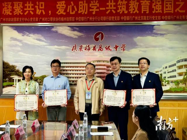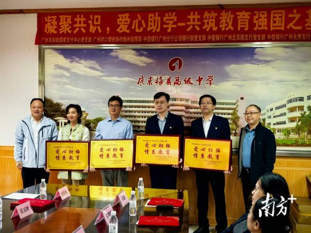下午,在廣梅指揮部協(xié)同推動(dòng)下,中信銀行廣州分行公司銀行部黨支部、北京路支行黨支部、北秀支行黨支部聯(lián)合廣州市財(cái)政國庫支付中心黨支部,在梅州市梅縣區(qū)高級(jí)中學(xué)舉辦了2024年度“信守溫度”公益助學(xué)活動(dòng)啟動(dòng)儀式。在活動(dòng)現(xiàn)場(chǎng),廣州市財(cái)政國庫支付中心黨支部書記易偉東、中信銀行廣州分行公司銀行部黨支部書記陳冠羽、北京路支行黨支部書記張鴻燕、北秀支行黨支部書記林宇分別為學(xué)生們送上助學(xué)慰問金和文具,勉勵(lì)他們自立自強(qiáng)、勤奮學(xué)習(xí),早日成為祖國棟梁之才,并向?qū)W校捐贈(zèng)了一批教學(xué)物資。廣梅指揮部、梅州市教育局和校方向捐贈(zèng)單位回贈(zèng)“愛心助梅,情系教育”的助學(xué)牌匾和感謝信。