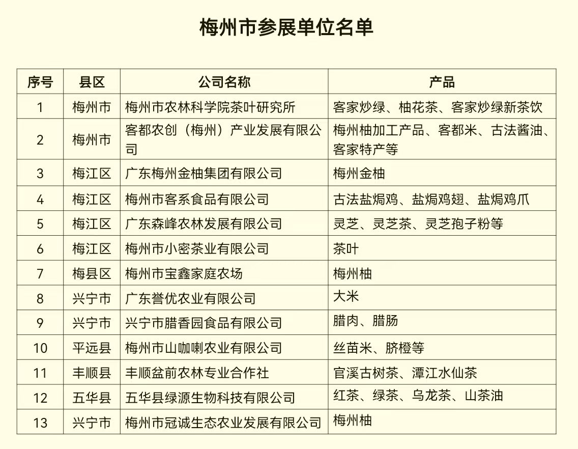 11月28日,第二十一屆中國國際農(nóng)產(chǎn)品交易會及第十三屆廣東現(xiàn)代農(nóng)業(yè)博覽會在廣州市中國進出口商品交易會展館 B 區(qū)開幕,市農(nóng)業(yè)農(nóng)村局組織我市金柚、茶葉、稻米、臍橙、鹽焗食品等13家單位和企業(yè)參展,誠邀全球品鑒獨具客家特色的“梅州味道”。