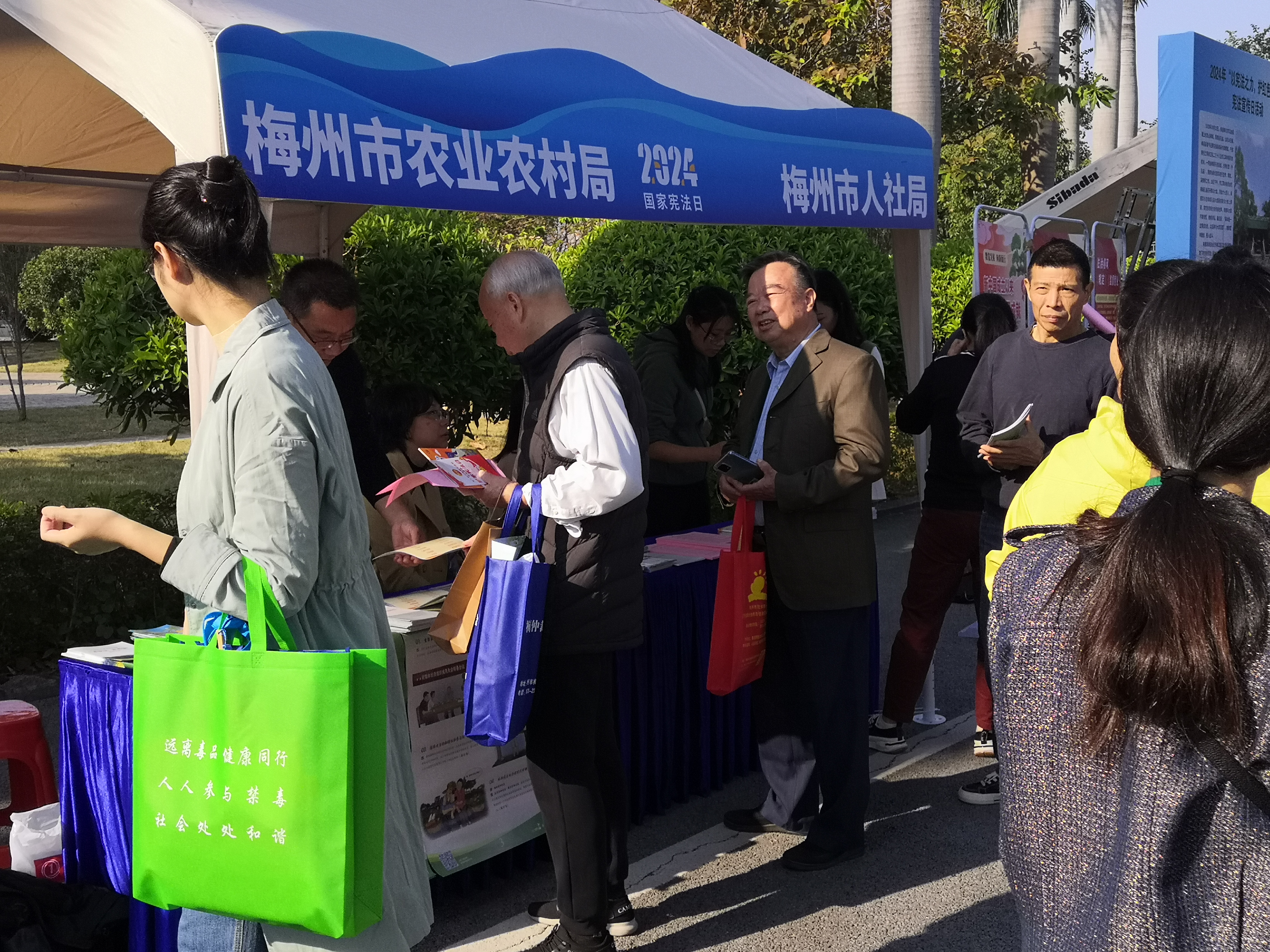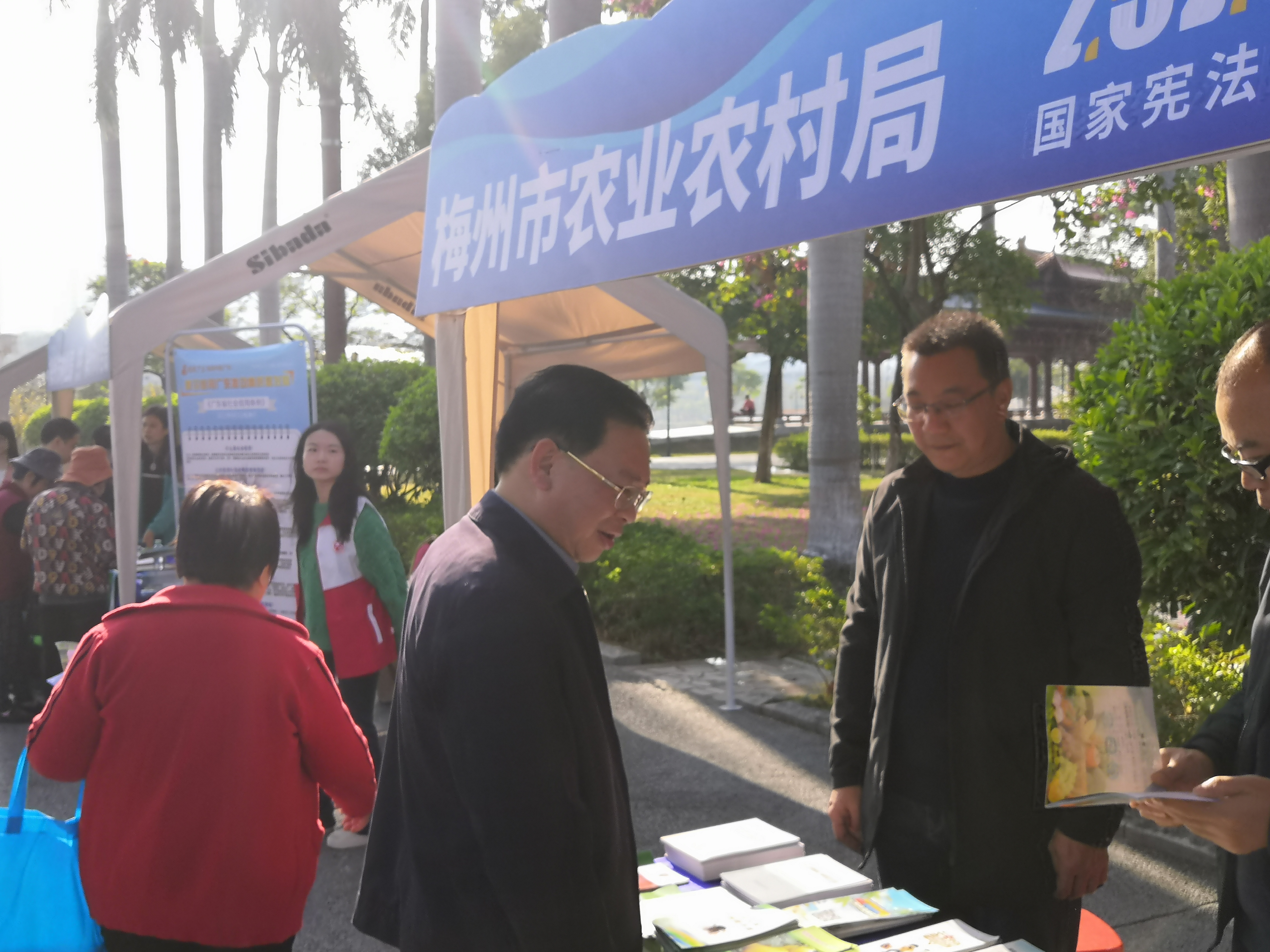 近日,根據(jù)市委依法治市委員會(huì)辦公室部署,市農(nóng)業(yè)農(nóng)村局積極組織參加在梅江區(qū)劍英公園舉行的2024年梅州市“12·4”國家憲法宣傳周暨法治文化系列活動(dòng)啟動(dòng)儀式。本次活動(dòng)主題是:大力弘揚(yáng)憲法精神,推動(dòng)進(jìn)一步全面深化改革。活動(dòng)中,市農(nóng)業(yè)農(nóng)村局積極開展法治文化和誠信宣傳,在展位向市民宣傳憲法、民法典、鄉(xiāng)村振興促進(jìn)法、農(nóng)產(chǎn)品質(zhì)量安全法等法律知識(shí),以派發(fā)誠信宣傳資料、圖片展覽和提供現(xiàn)場咨詢等形式,大力宣傳法治和誠信文化。
