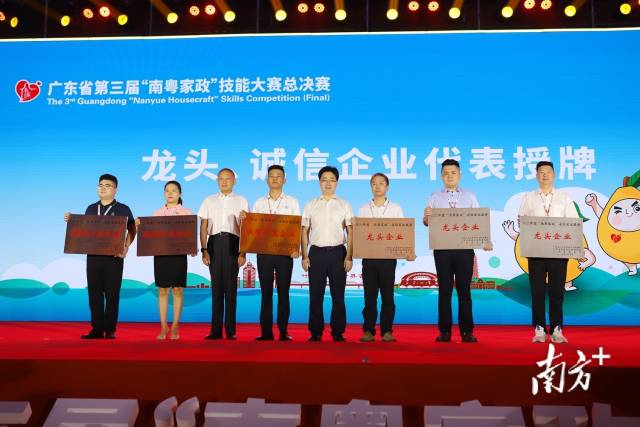 開幕儀式上,廣州、深圳、珠海等21個(gè)地級(jí)市代表隊(duì)帶著以梅州金柚為原型,取名為“嘉嘉”“真真”的吉祥物入場(chǎng),同時(shí)儀式上為2022年度省級(jí)家政龍頭企業(yè)、誠(chéng)信示范企業(yè)代表授牌。