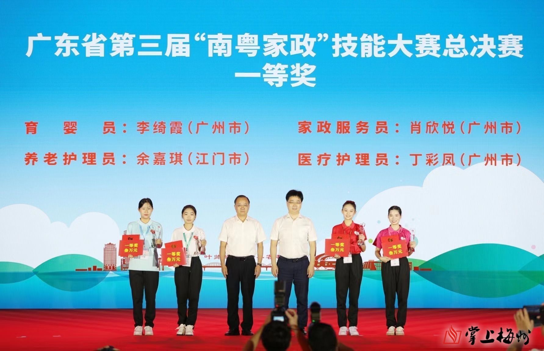 本次大賽為省級一類競賽,共有來自省內(nèi)21個地級市代表隊共240多名參賽選手齊聚客都梅州,圍繞育嬰員、家政服務員、養(yǎng)老護理員、醫(yī)療護理員四大項目開啟家政技能比拼。經(jīng)過激烈角逐,共有24名選手獲得一、二、三等獎,另有97名選手獲得優(yōu)勝獎。其中,來自廣州市的李綺霞、肖欣悅、丁彩鳳分別獲得育嬰員項目、家政服務員、醫(yī)療護理員項目冠軍,來自江門市的余嘉琪獲得養(yǎng)老護理員項目冠軍。另外,還有3名選手獲評“最佳新星獎”,20名教練獲“金(銀、銅)牌教練”。值得關注的是,來自梅州市的選手溫云華獲育嬰員賽項三等獎。