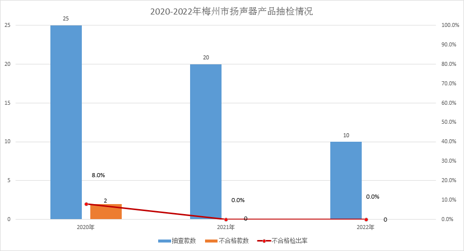 圖1 2020-2022年梅州市揚(yáng)聲器產(chǎn)品抽檢情況