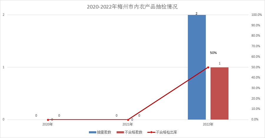 圖4 2020-2022年梅州市內(nèi)衣產(chǎn)品抽檢情況
