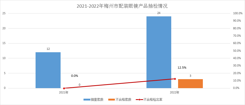 圖1 2021-2022年梅州市配裝眼鏡產(chǎn)品抽檢情況