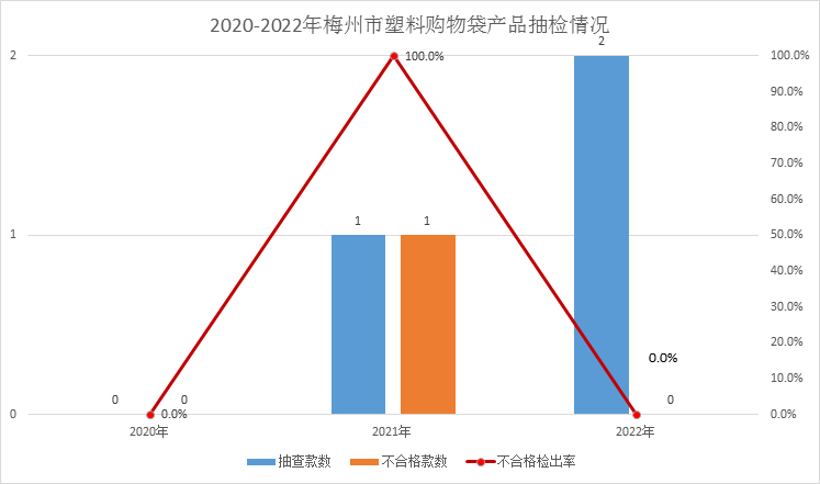 圖4 2020-2022年梅州市塑料購(gòu)物袋產(chǎn)品抽檢情況