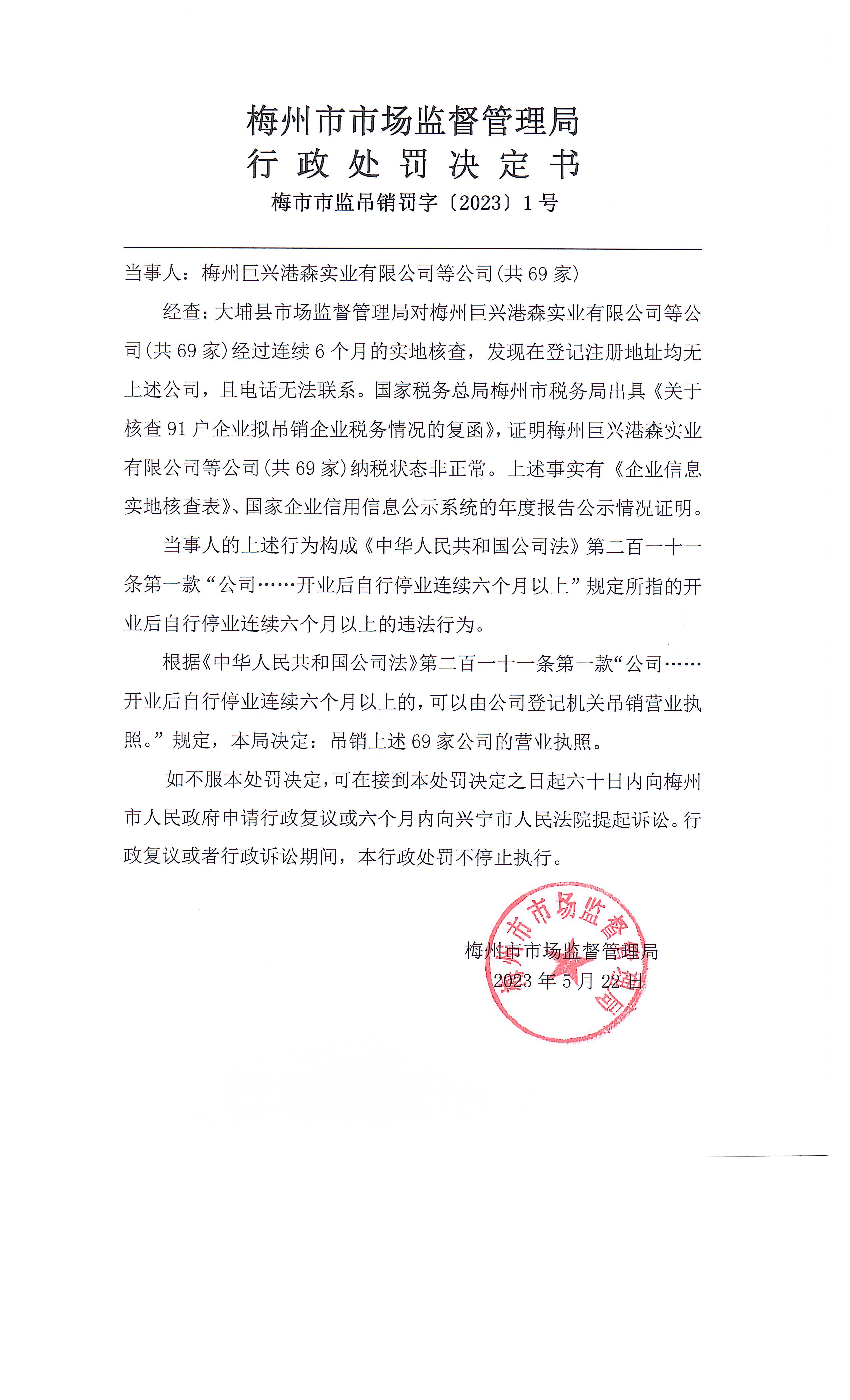 《梅州市市場監(jiān)督管理局行政處罰決定書》(梅市市監(jiān)吊銷罰字〔2023〕1號).jpg