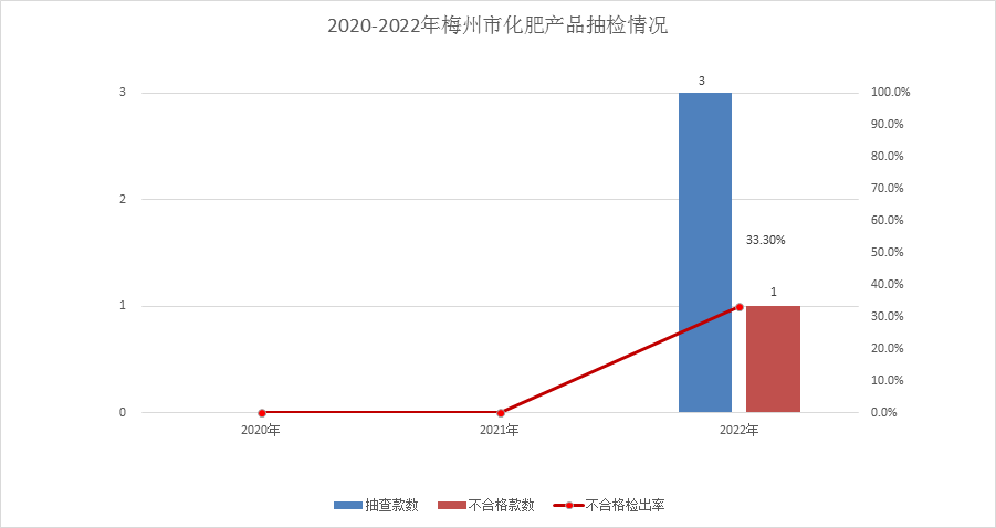 圖2 2020-2022年梅州市化肥產(chǎn)品抽檢情況