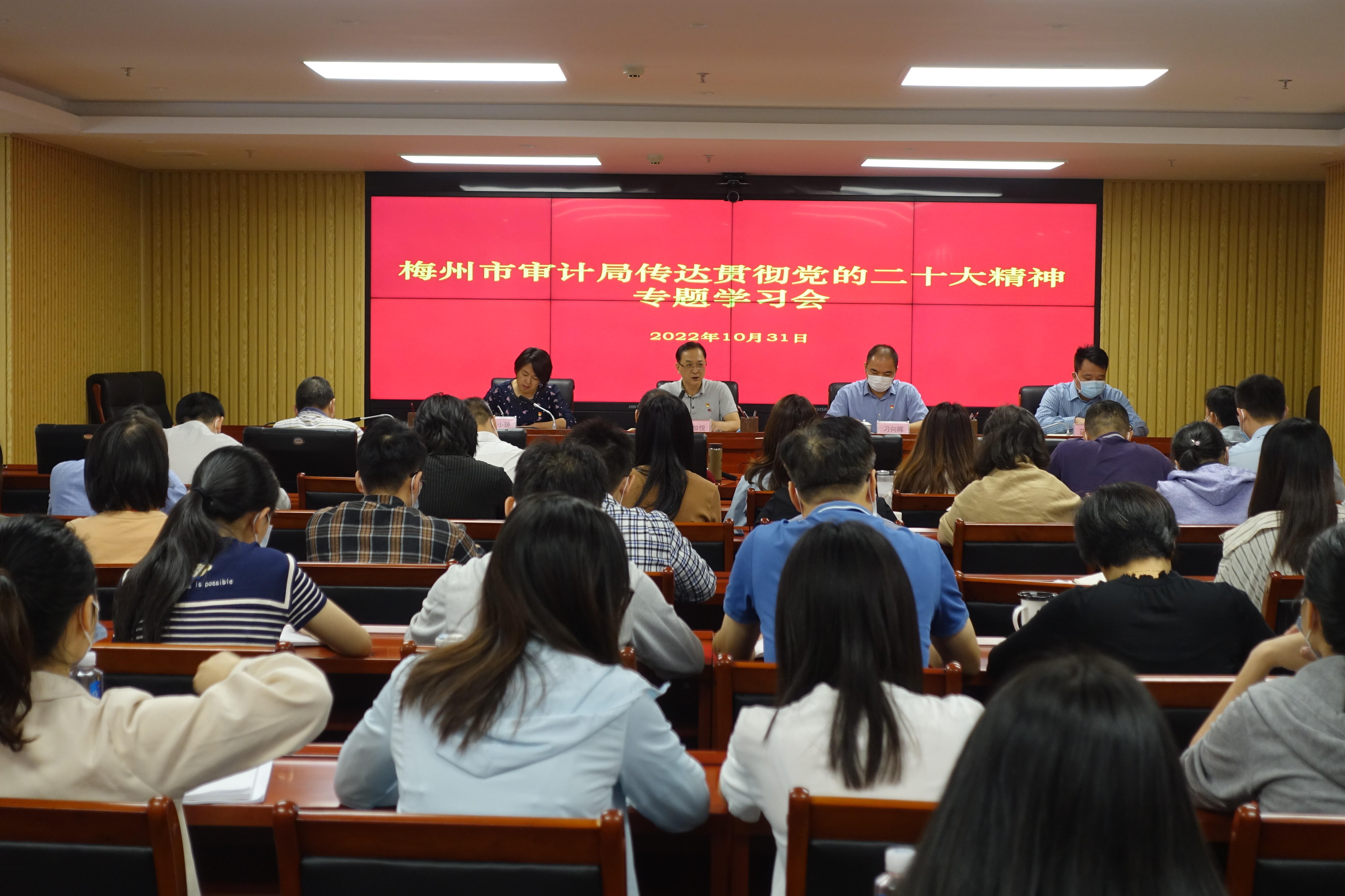 會(huì)議指出,要把學(xué)習(xí)宣傳貫徹黨的二十大精神作為首要政治任務(wù)抓緊抓實(shí)。全局上下要深入學(xué)習(xí)領(lǐng)會(huì)黨的二十大報(bào)告的精神實(shí)質(zhì)、豐富內(nèi)涵,深刻領(lǐng)悟“兩個(gè)確立”的決定性意義,進(jìn)一步增強(qiáng)“四個(gè)意識(shí)”、堅(jiān)定“四個(gè)自信”、做到“兩個(gè)維護(hù)”,堅(jiān)定不移在思想上政治上行動(dòng)上與黨中央保持高度一致。要堅(jiān)持知信行統(tǒng)一,精心部署組織。領(lǐng)導(dǎo)班子、領(lǐng)導(dǎo)干部要以身作則,帶頭并引導(dǎo)廣大審計(jì)干部認(rèn)真研讀黨的二十大報(bào)告和新黨章,準(zhǔn)確把握黨的二十大精神的思想精髓、核心要義;黨總支、黨支部要運(yùn)用“三會(huì)一課”、集中學(xué)習(xí)、個(gè)人自學(xué)等方式,持續(xù)興起學(xué)習(xí)宣傳貫徹?zé)岢?;各科(室、中心)?fù)責(zé)人要統(tǒng)籌抓好學(xué)習(xí)和工作,把黨的二十大精神貫徹落實(shí)到謀劃審計(jì)工作、實(shí)施審計(jì)項(xiàng)目全過(guò)程各環(huán)節(jié)。要堅(jiān)持學(xué)思用貫通,狠抓工作落實(shí)。聚焦黨的二十大確定的目標(biāo)任務(wù),立足“審計(jì)監(jiān)督首先是經(jīng)濟(jì)監(jiān)督”定位,突出服務(wù)實(shí)體經(jīng)濟(jì)和鄉(xiāng)村振興兩大重點(diǎn),依法全面履行審計(jì)監(jiān)督職責(zé),做好常態(tài)化“經(jīng)濟(jì)體檢”。并以開(kāi)展“深入學(xué)習(xí)貫徹黨的二十大精神,以研究型審計(jì)推動(dòng)梅州蘇區(qū)高質(zhì)量發(fā)展”主題征文活動(dòng)為抓手,創(chuàng)建學(xué)習(xí)型、研究型、攻關(guān)型、服務(wù)型模范機(jī)關(guān),樹(shù)立大抓研究的鮮明導(dǎo)向,推動(dòng)審計(jì)事業(yè)的高質(zhì)量發(fā)展。