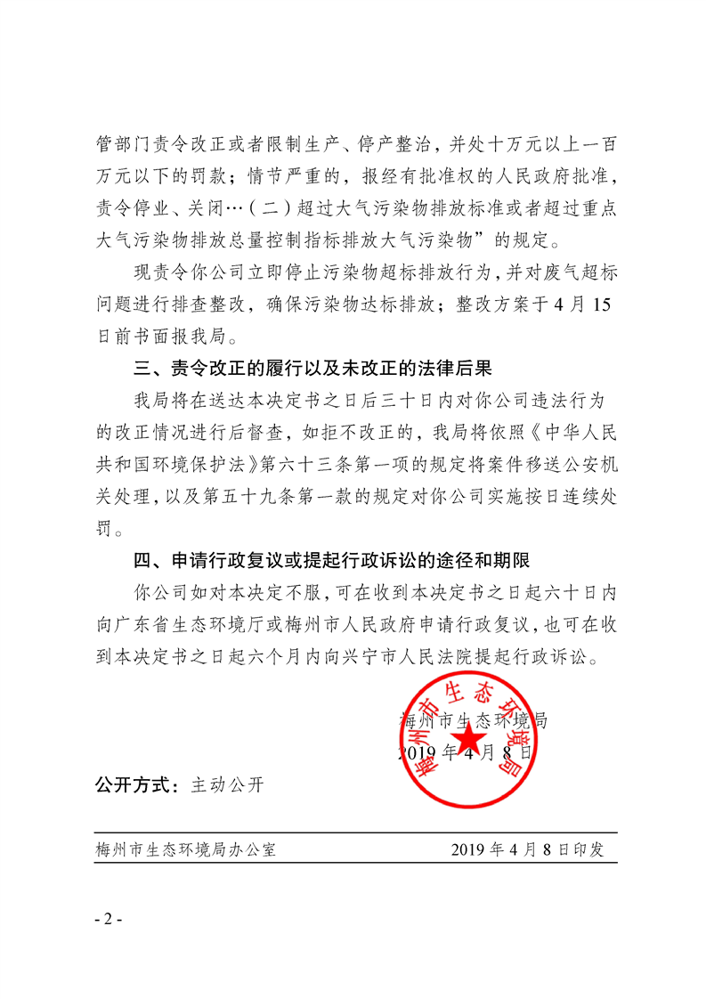 梅州市人民政府門戶網(wǎng)站 梅州市生態(tài)環(huán)境局 責(zé)令改正 梅市環(huán)責(zé)改〔2019〕第005號梅州市環(huán)境保護(hù)局責(zé)令改正違法行為決定書(梅州金川醫(yī)療廢物集中處置有限公司)