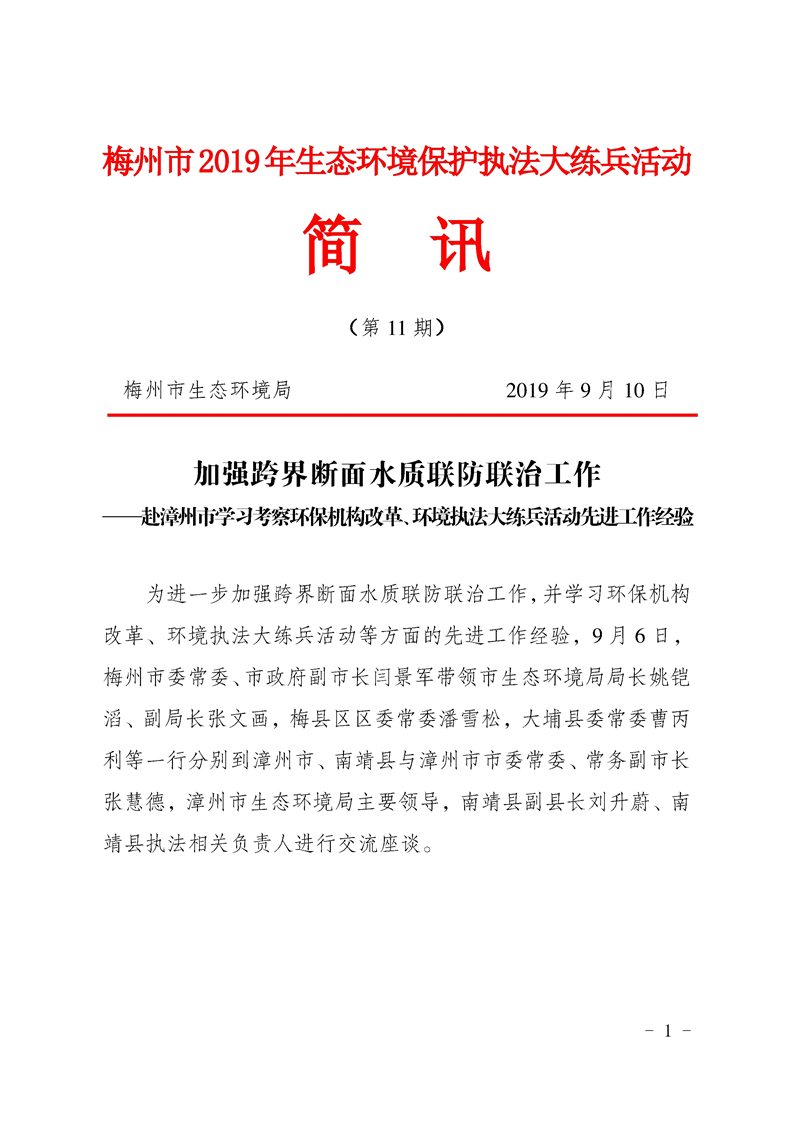 2019年梅州市生態(tài)環(huán)境保護(hù)執(zhí)法大練兵活動(dòng)簡訊(第11期)