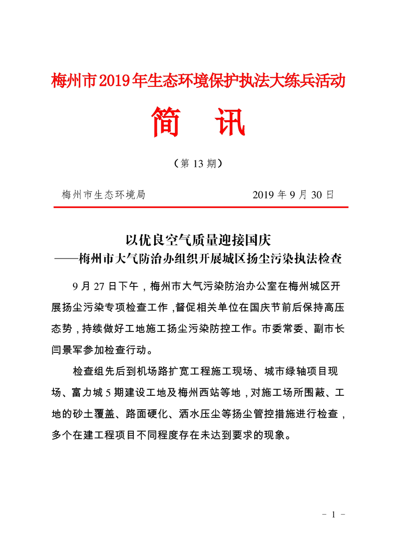 2019年梅州市生態(tài)環(huán)境保護(hù)執(zhí)法大練兵活動(dòng)簡(jiǎn)訊(第13期)