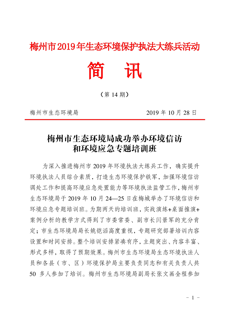 2019年梅州市生態(tài)環(huán)境保護執(zhí)法大練兵活動簡訊(第14期)