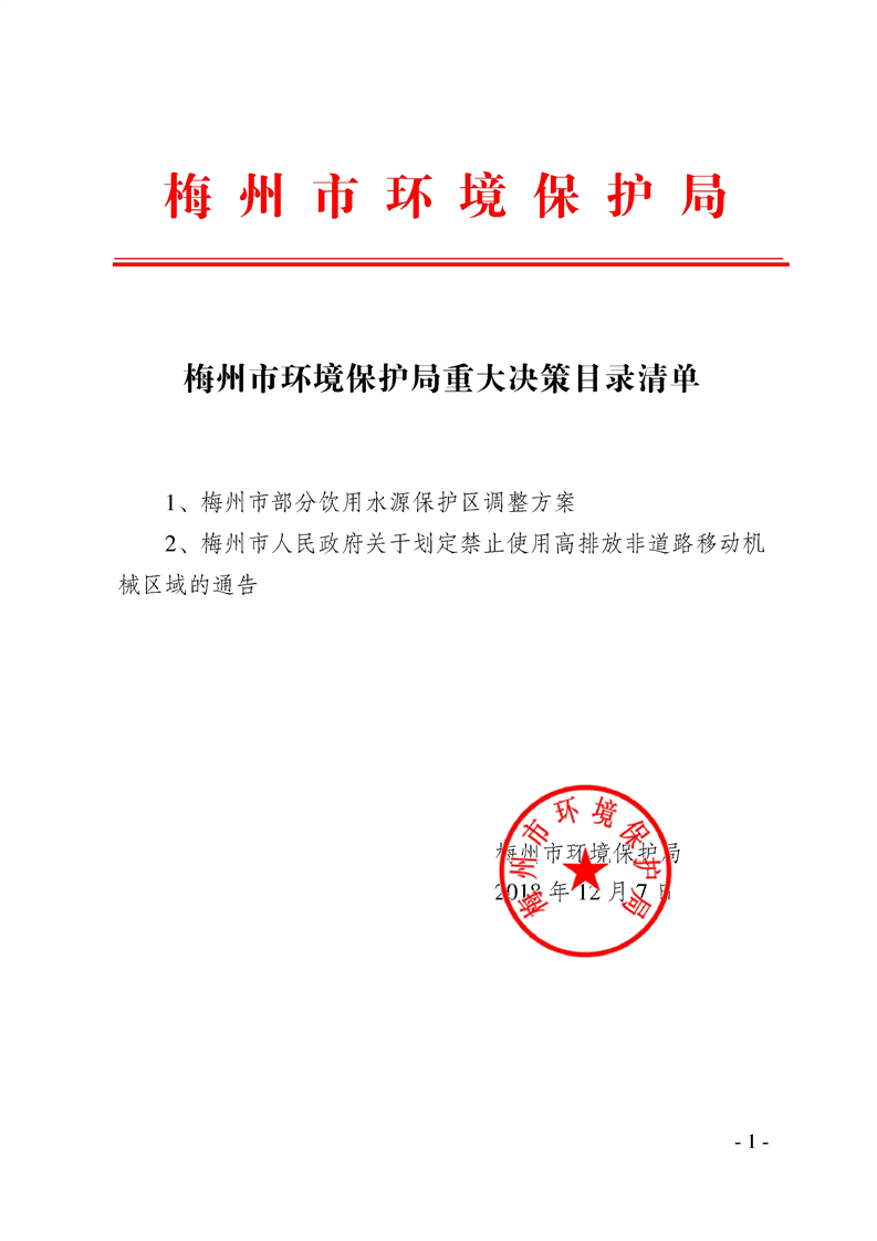 梅州市人民政府門戶網(wǎng)站 梅州市生態(tài)環(huán)境局 依法行政工作情況 梅州市環(huán)境保護局重大決策目錄清單