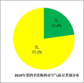 2019年第四季度梅州市城區(qū)環(huán)境空氣質(zhì)量有效監(jiān)測(cè)天數(shù)92天。環(huán)境空氣質(zhì)量指數(shù)(AQI)范圍26~91;其中,空氣質(zhì)量?jī)?yōu)的天數(shù)為21天,良的天數(shù)71天,優(yōu)良率為100%,同比持平。第四季度城市環(huán)境空氣質(zhì)量綜合指數(shù)為3.92,在全省21個(gè)地級(jí)市中排第4名。