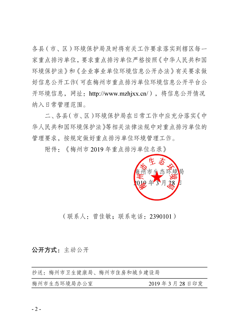 梅州市環(huán)境保護(hù)局關(guān)于公布《梅州市2019年重點(diǎn)排污單位名錄》的通知