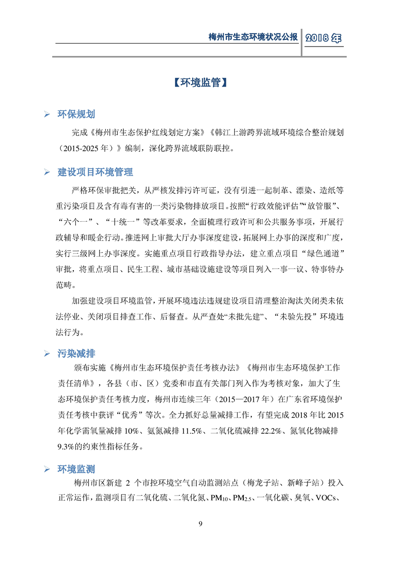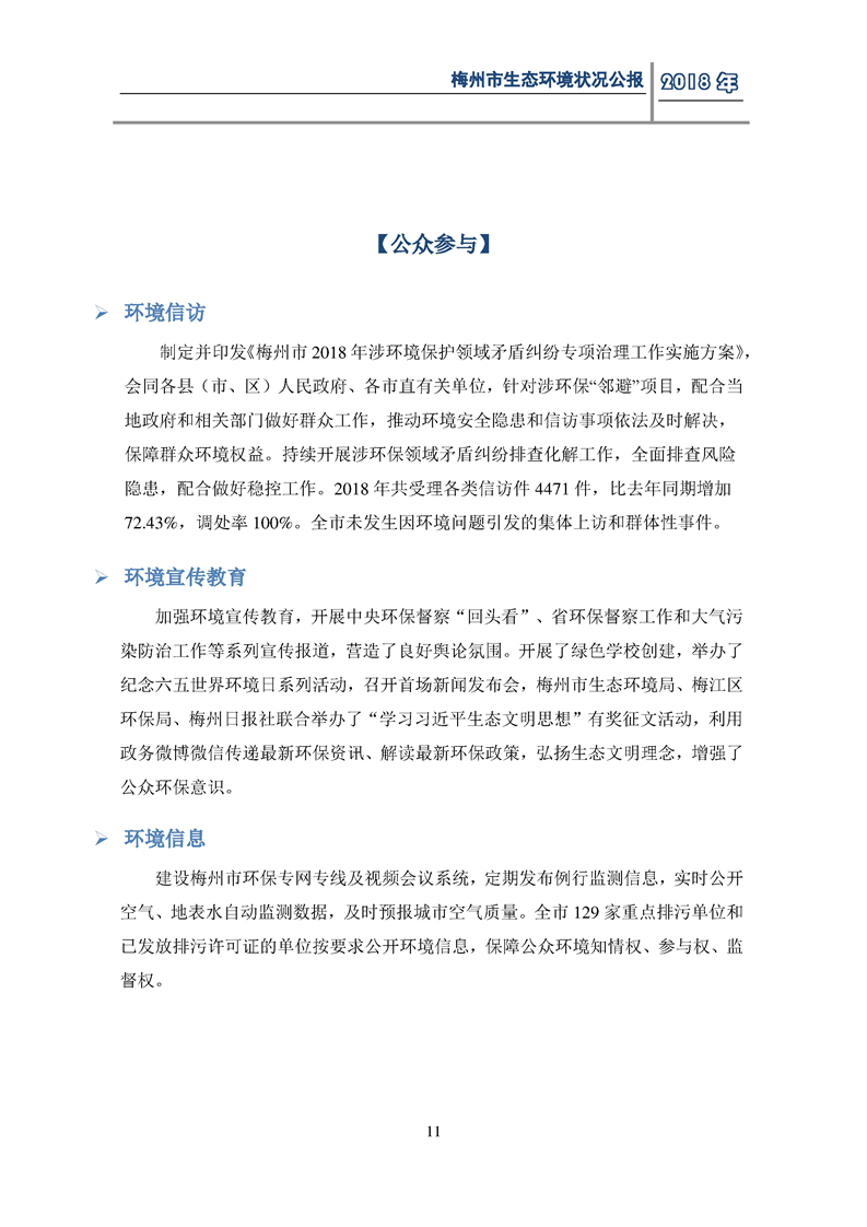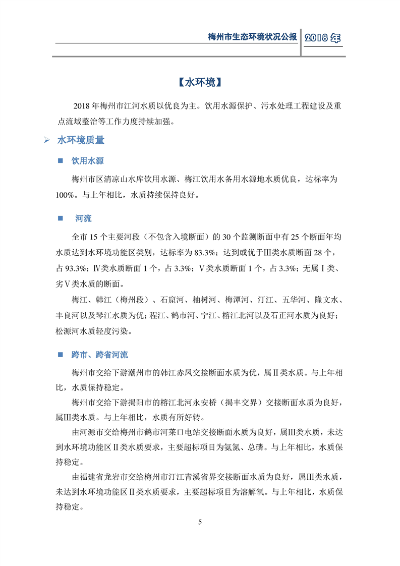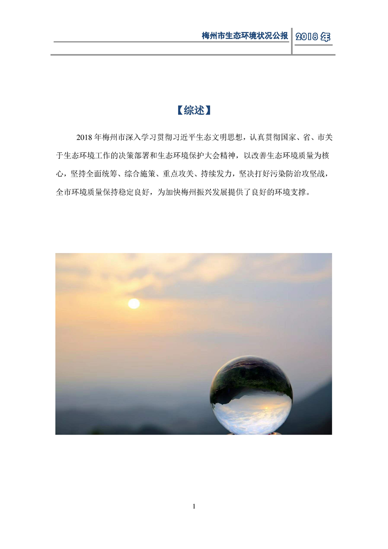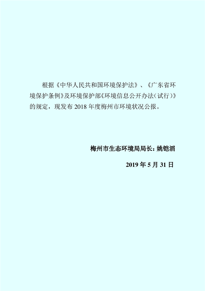 梅州市人民政府門戶網(wǎng)站 梅州市生態(tài)環(huán)境局 部門文件 2018年梅州市生態(tài)環(huán)境狀況公報(bào)