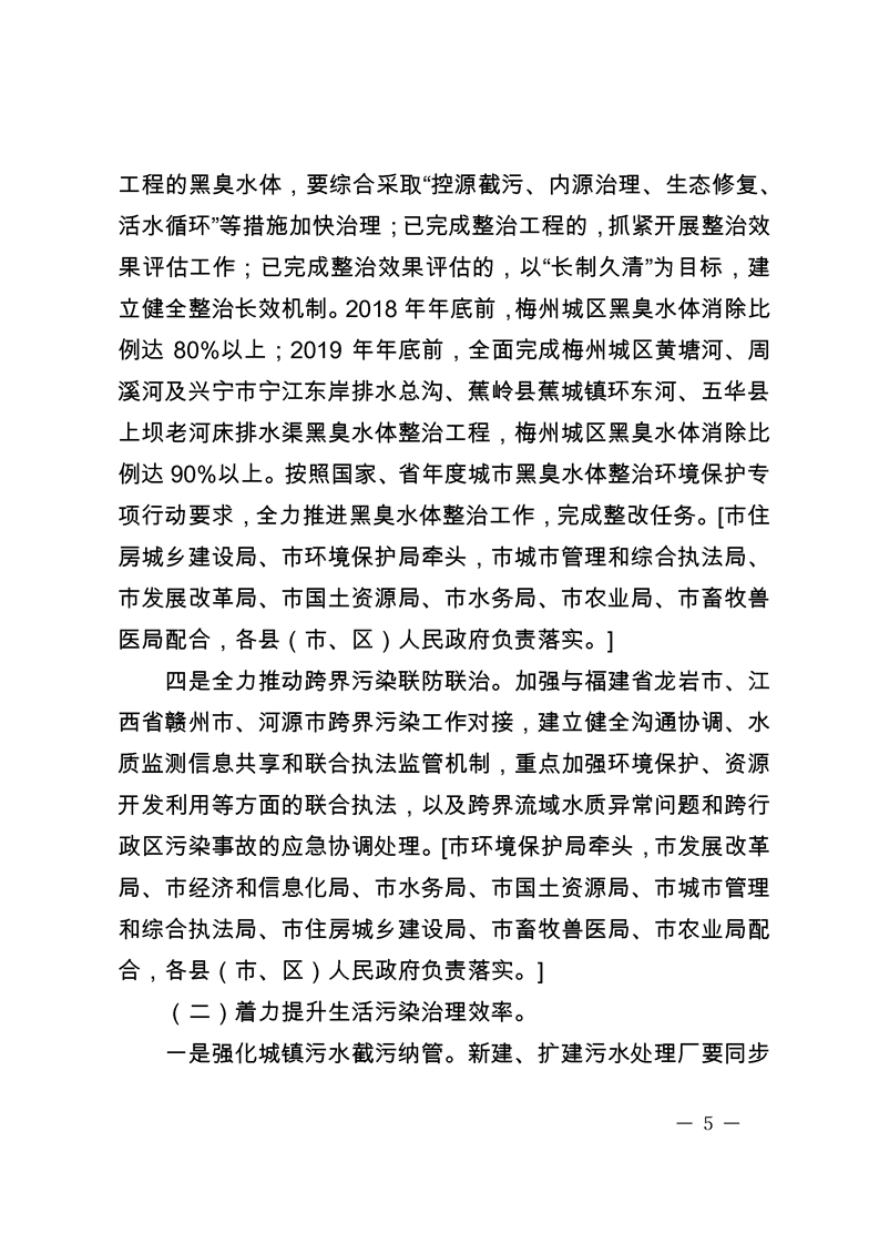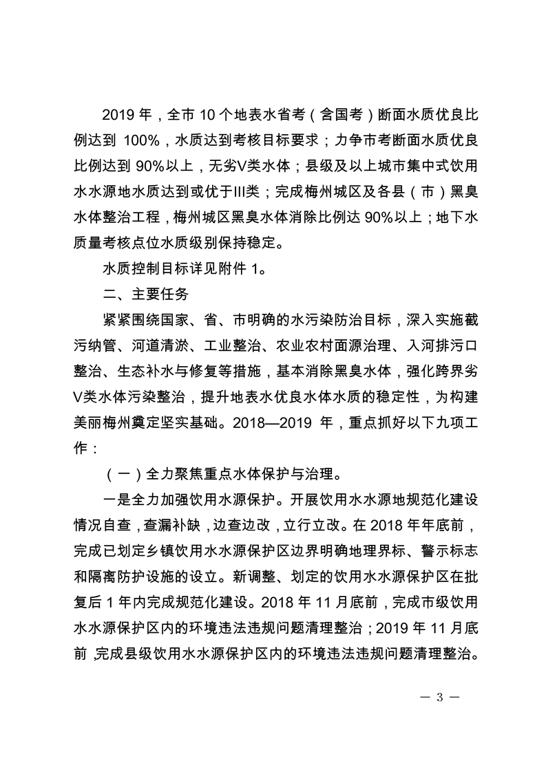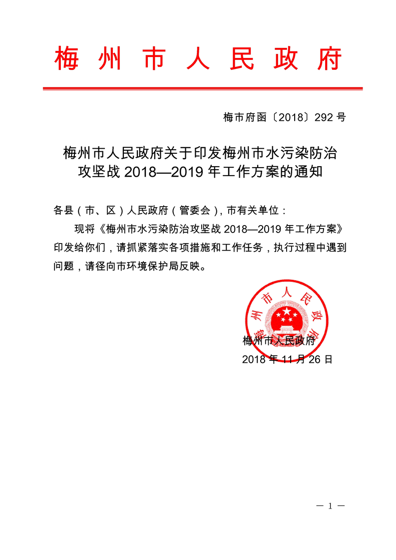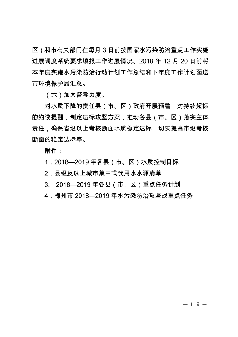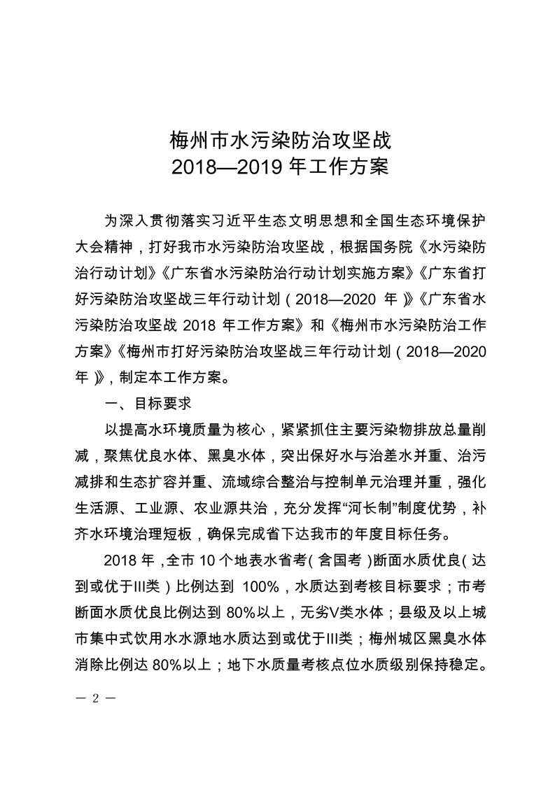 梅州市人民政府關(guān)于印發(fā)梅州市水污染防治攻堅(jiān)戰(zhàn)2018—2019年工作方案的通知