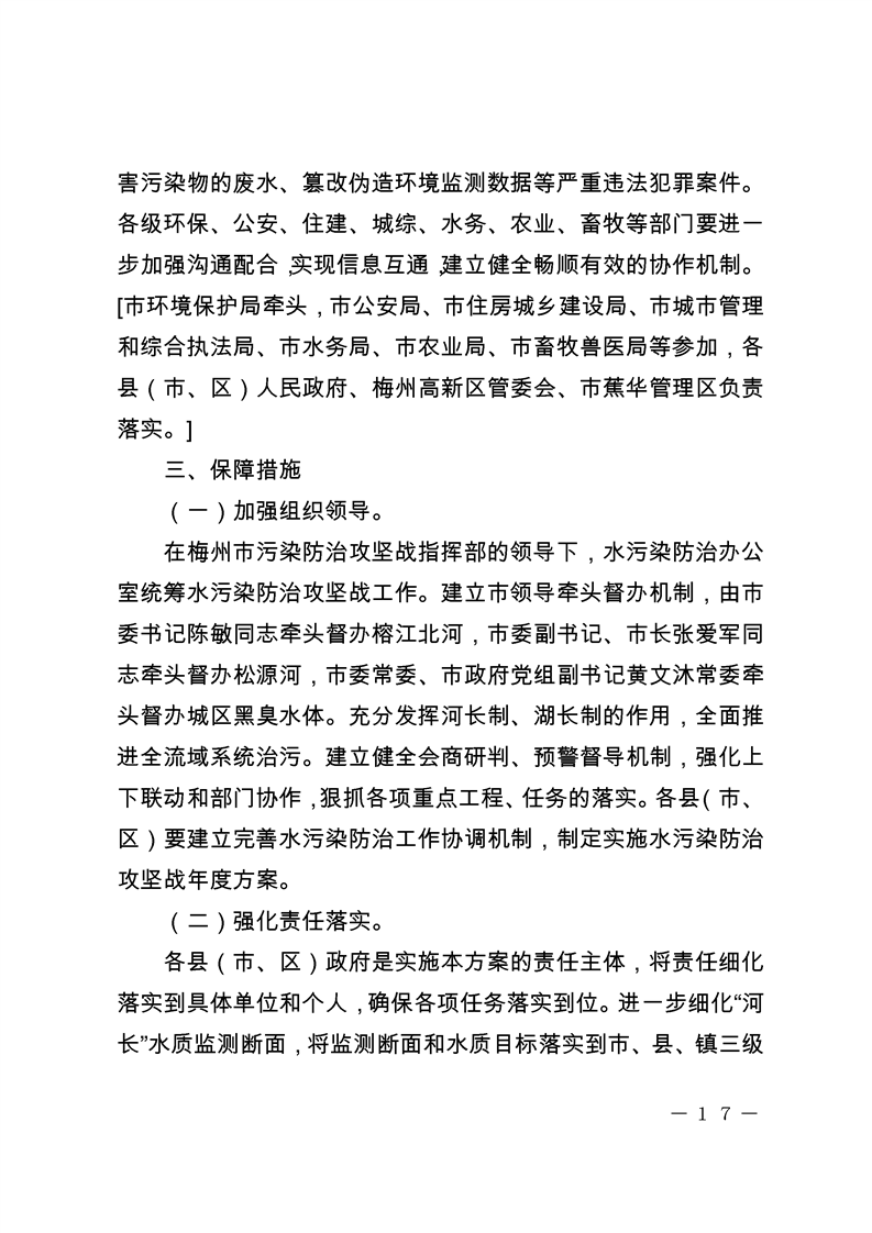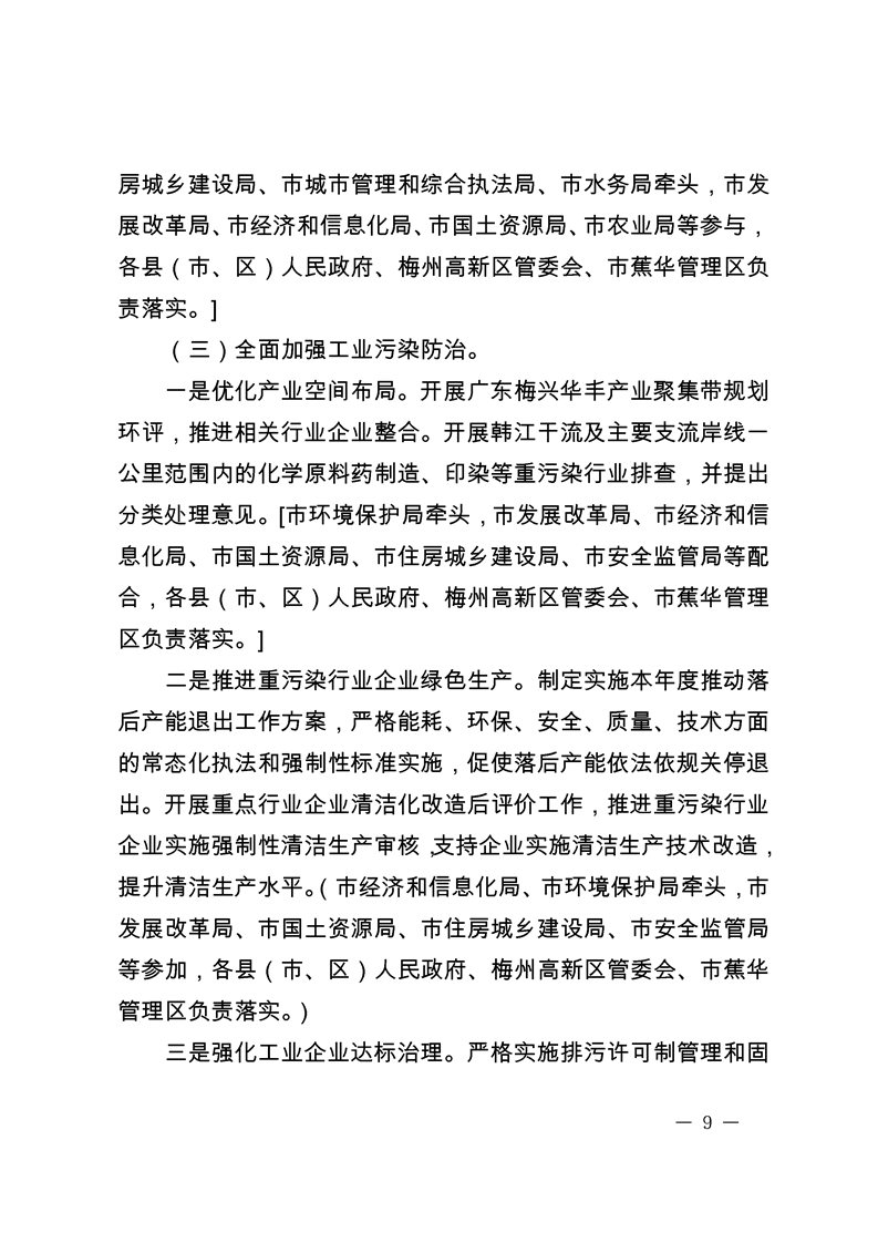 梅州市人民政府門戶網(wǎng)站 梅州市生態(tài)環(huán)境局 部門文件 梅州市人民政府關(guān)于印發(fā)梅州市水污染防治攻堅(jiān)戰(zhàn)2018—2019年工作方案的通知