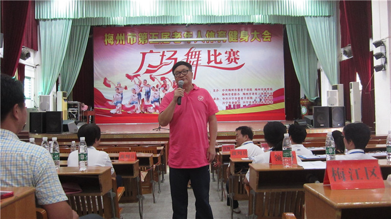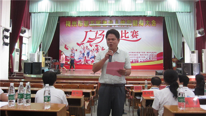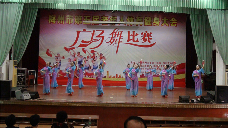 6月24日,梅州市第五屆老年人體育健身大會廣場舞比賽在興寧市沐彬中學(xué)演播大廳舉行。來自各縣(市、區(qū))、市直隊共九支隊伍參加比賽。市老體協(xié)領(lǐng)導(dǎo)何萬真、劉廣新、李柏華、陳珍書、陳烈鋒、何梅林、興寧市副市長練勝文、興寧市體育局、老體協(xié)等領(lǐng)導(dǎo)出席大會并觀看比賽。