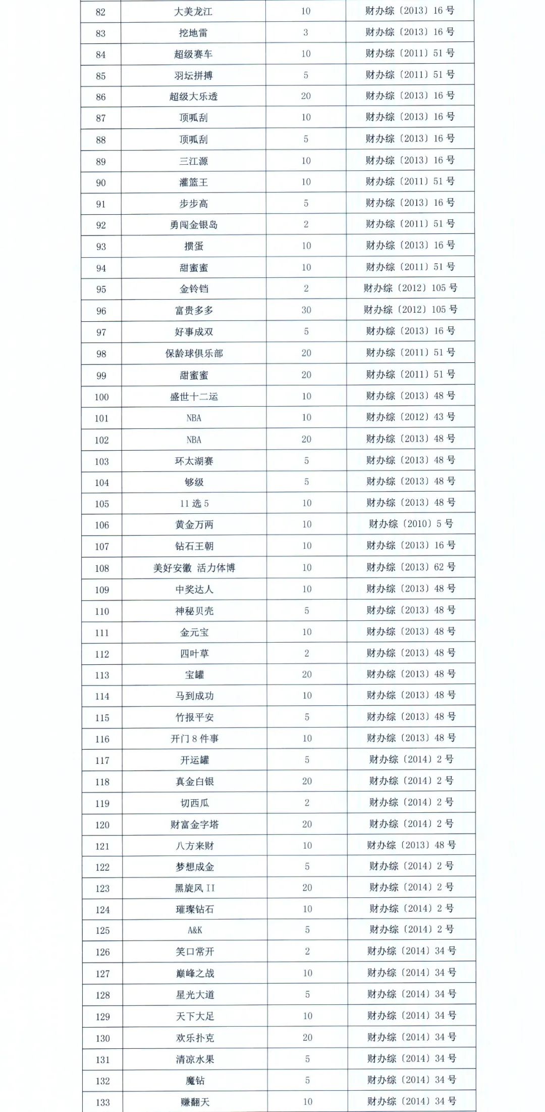 梅州市人民政府門戶網(wǎng)站 梅州市體育局 通知公告 體育總局彩票中心關(guān)于停止銷售“年年有魚”等 168款即開型體育彩票游戲的公告