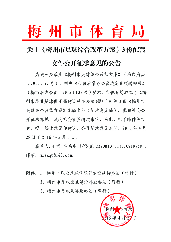 第一條 為貫徹《梅州市振興“足球之鄉(xiāng)”十年規(guī)劃》(梅市府〔2010〕46號)、《梅州市關于加快發(fā)展足球運動的實施意見》精神,促進我市職業(yè)足球俱樂部健康穩(wěn)定發(fā)展,按照《梅州市足球綜合改革方案》(梅市府辦〔2015〕27號)有關支持職業(yè)足球俱樂部建設的要求,結(jié)合我市實際,特制定本辦法。