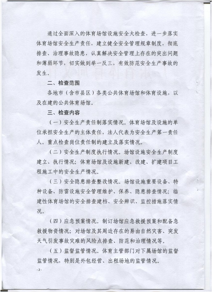 轉(zhuǎn)發(fā)省體育局關(guān)于開(kāi)展全省體育場(chǎng)館設(shè)施安全大檢查工作的通知