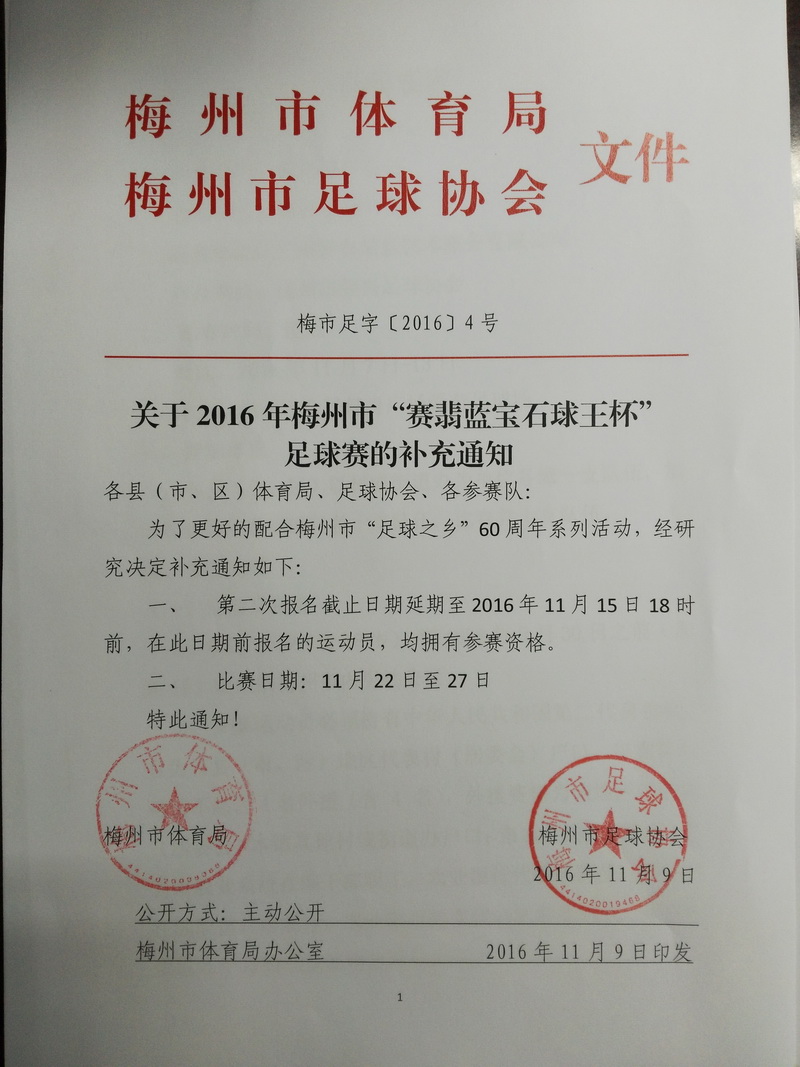 梅州市人民政府門戶網(wǎng)站 梅州市體育局 通知公告 關(guān)于2016年梅州市“賽翡藍(lán)寶石球王杯”足球賽的補(bǔ)充通知