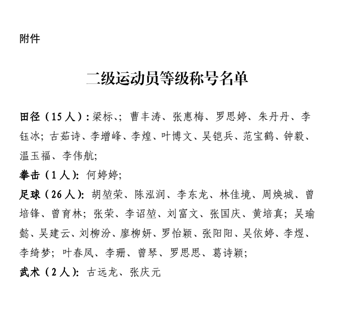 關(guān)于對取得二級稱號運(yùn)動員進(jìn)行公示的通知