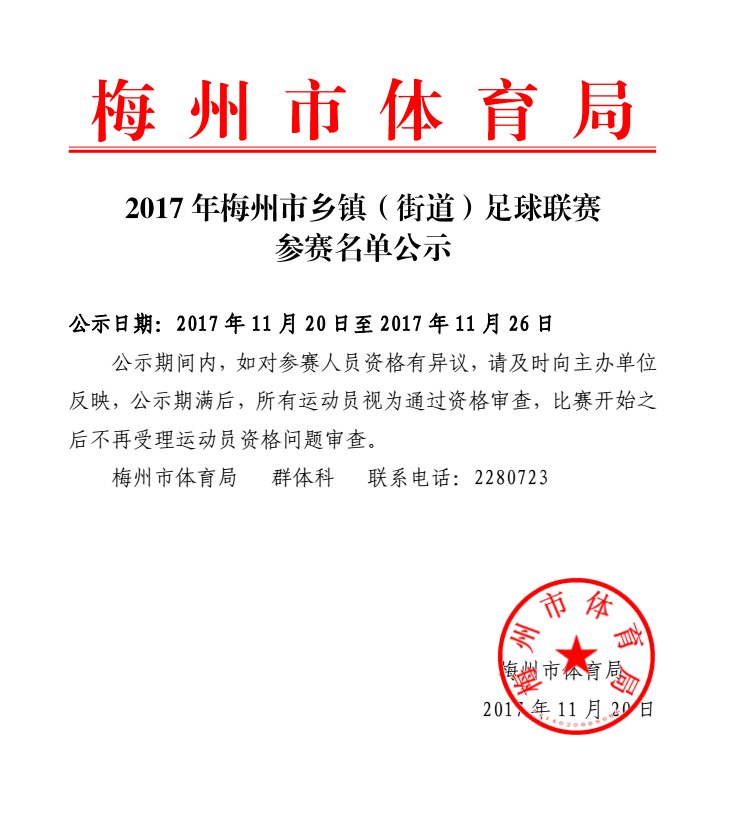梅州市人民政府門戶網(wǎng)站 梅州市體育局 通知公告 2017年梅州市鄉(xiāng)鎮(zhèn)(街道)足球聯(lián)賽參賽名單公示公示名單