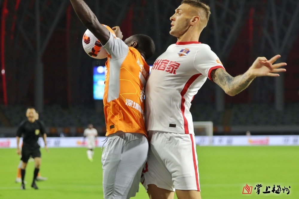 開場階段,雙方在進行簡單試探過后,梅州客家率先開始前壓,積極組織攻勢。第21分鐘,吉森因傷無法堅持比賽,梅州客家主教練米蘭被迫提前換上武卡諾維奇。第34分鐘,李帥中場機敏長傳至禁區(qū),打穿深圳隊整條防線,楊意林單刀面對門將,可惜射門力量太小被深圳門將撲出,梅州客家錯失絕佳機會。隨后,李帥禁區(qū)外一腳抽射稍稍偏出球門。第41分鐘,梅州客家終于將攻勢轉化為進球,楊意林在右路拿球突施冷箭,皮球在飛行過程中側蹭到了深圳后衛(wèi)林采民后背上彈進球門。補時階段,梅州客家發(fā)起反擊,武卡諾維奇單刀射門打在立柱上彈出,錯失擴大比分良機。