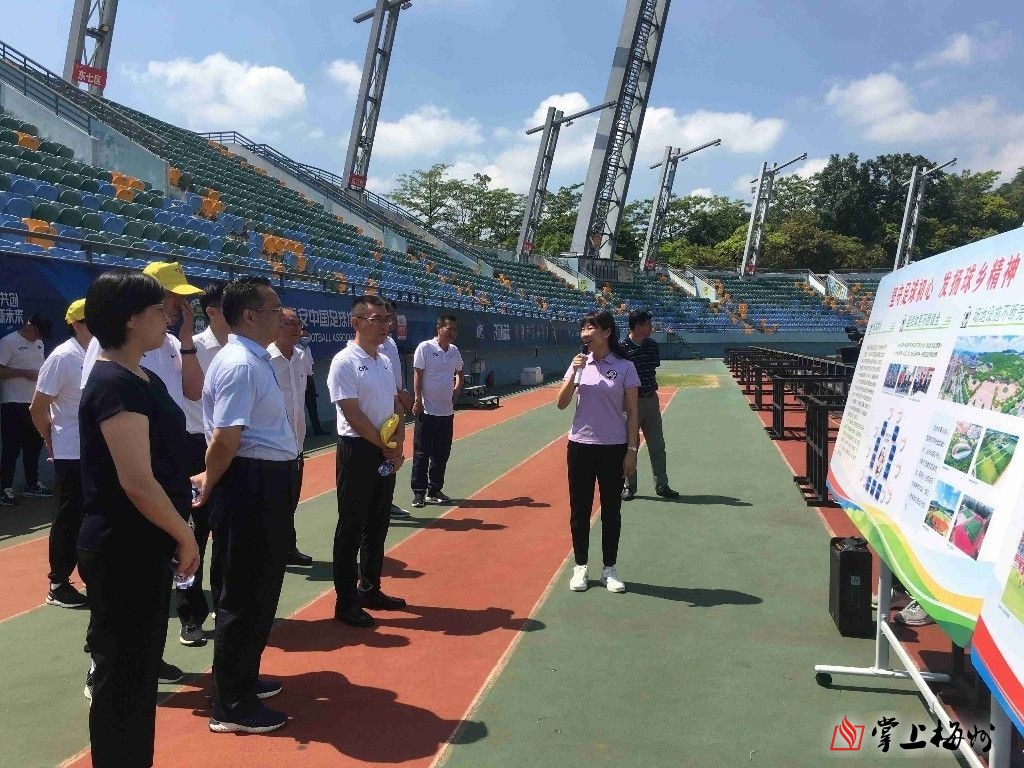 考察組到曾憲梓體育場考察場館設(shè)施。(黃科 攝)