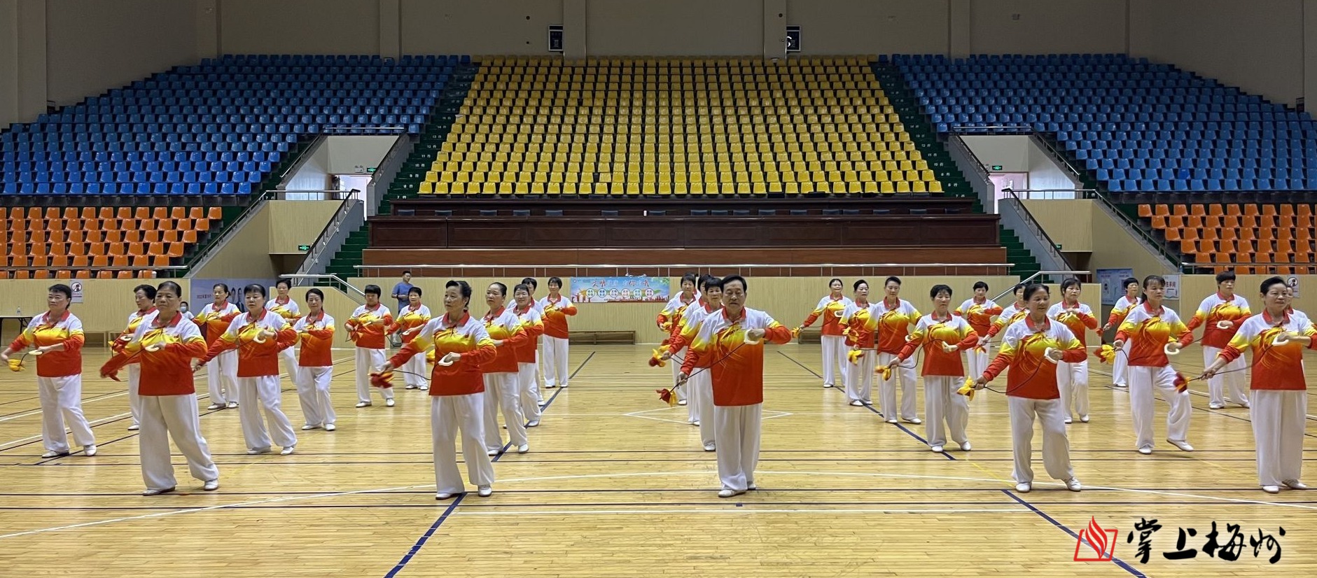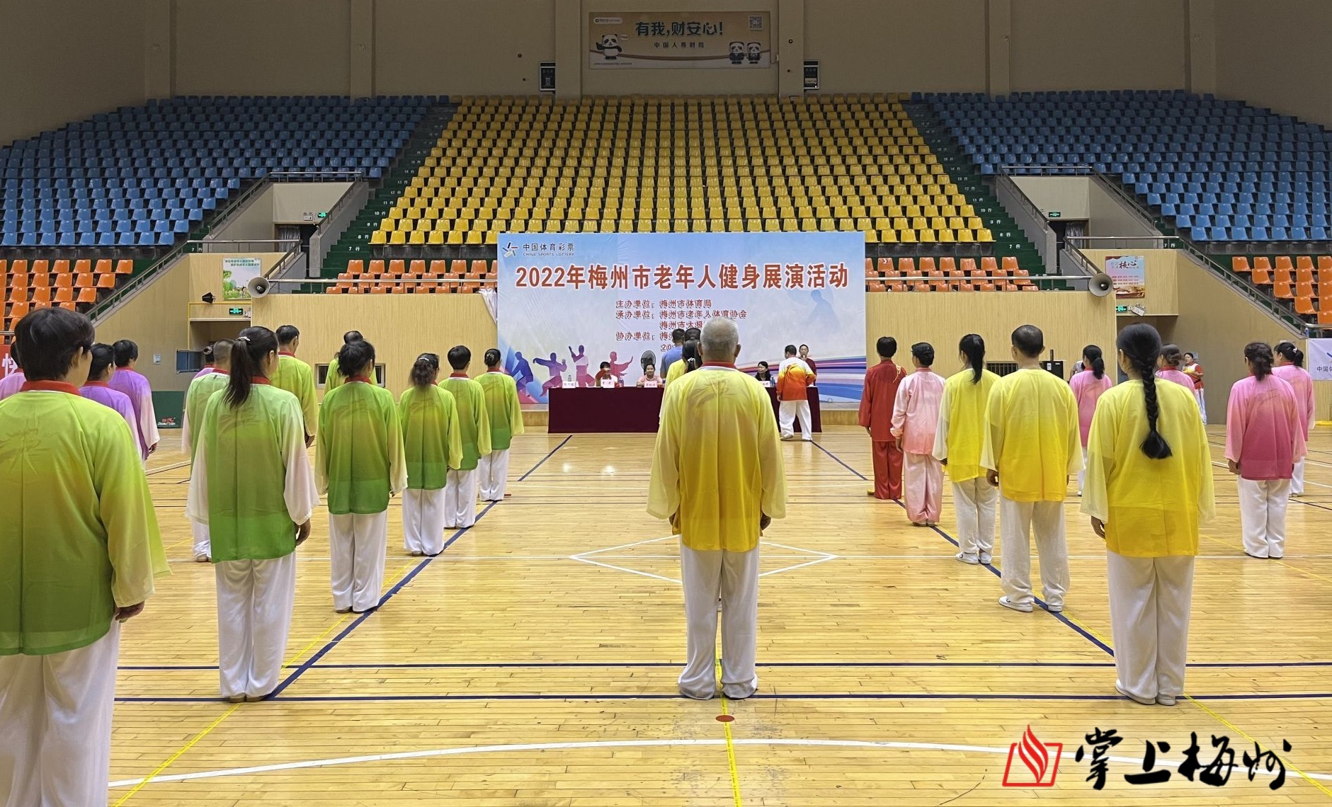 10月3日上午,梅城劍英體育館內(nèi)熱鬧非凡。梅州市太極拳協(xié)會50位會員聚集在一起,在重陽節(jié)來臨之際參加了2022年梅州市老年人健身展演活動。