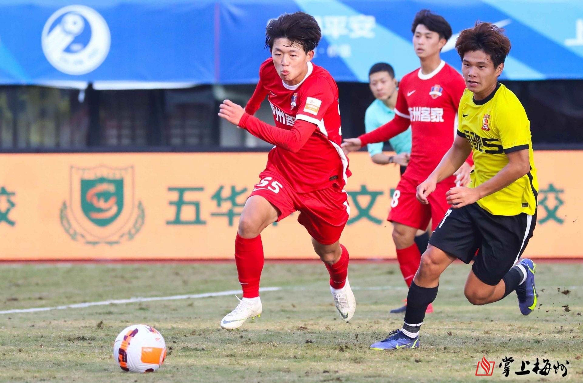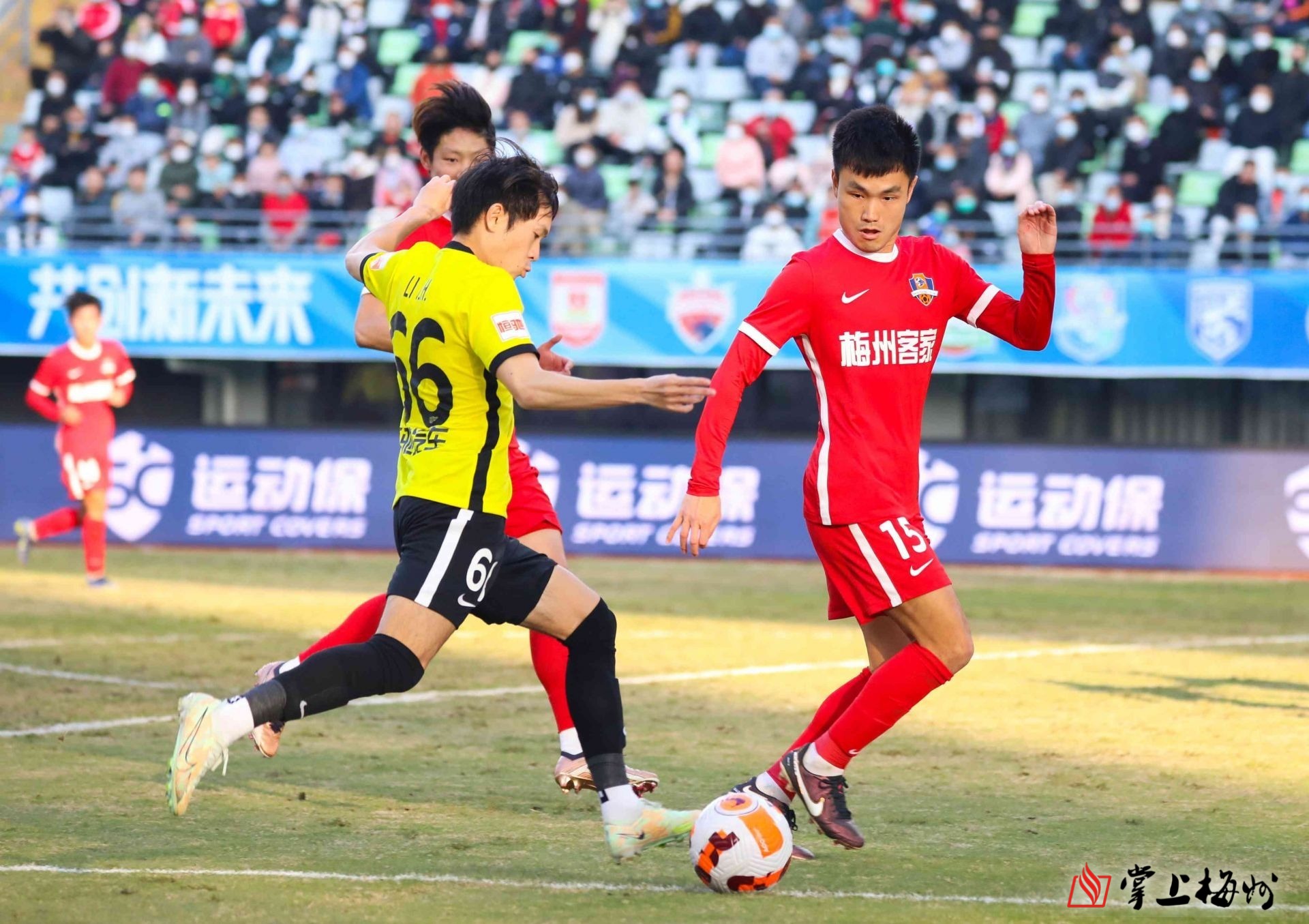 比賽開始后,梅州客家的年輕球員們并沒有畏手畏腳,而是大膽進(jìn)行前壓,積極組織攻勢。第9分鐘,梅州客家開出定位球被對手解圍,陳哲超跟進(jìn)一腳爆射高出橫梁。第45分鐘,劉子恒左路傳中,李俊鋒抽射偏出。半場結(jié)束,雙方0∶0戰(zhàn)平。