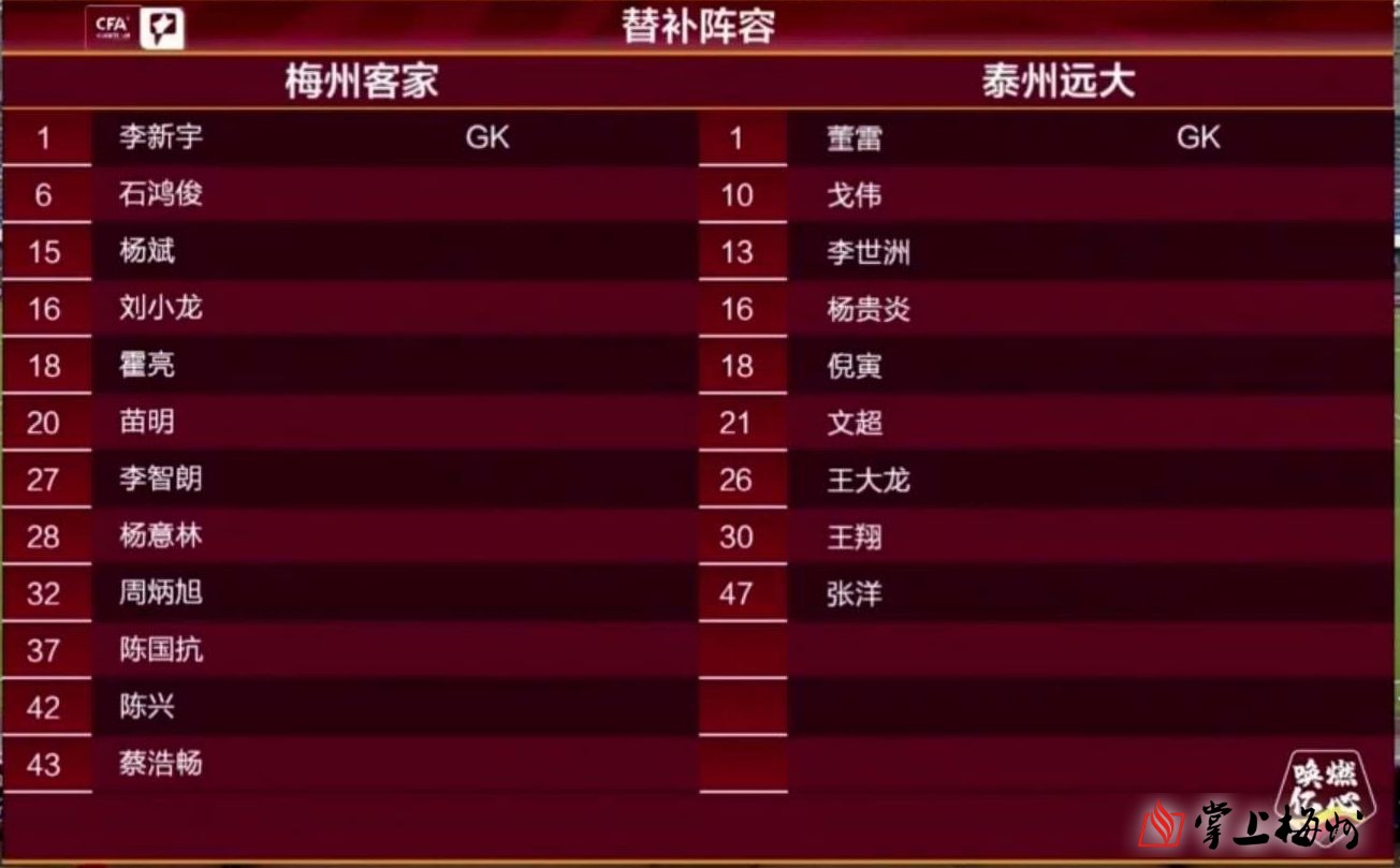 前三輪戰(zhàn)罷,三連敗的泰州遠(yuǎn)大已退出沖超名額競(jìng)爭(zhēng),梅州客家手握3分,如果能在最后兩戰(zhàn)中拿足6分,保留沖超希望。