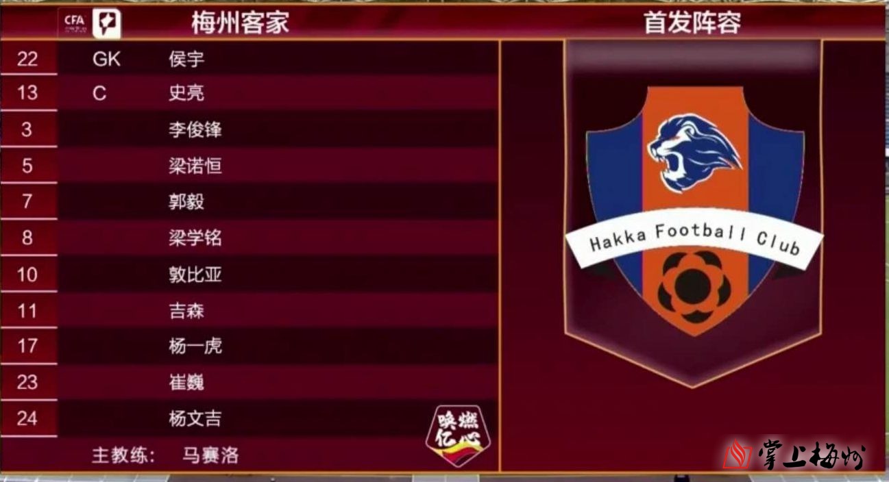 此役,梅州客家雙外援搭檔梁學(xué)銘,后防大將楊一虎火線復(fù)出,郭毅本賽季首次首發(fā)。