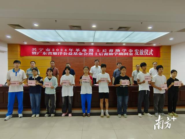 據(jù)悉,此次廣東省雁洋公益基金會(huì)資助的興寧市革命烈士后裔共40人,其中研究生1人、本科12人、大專7人、中專2人、高中18人,資助總金額9.65萬(wàn)元。